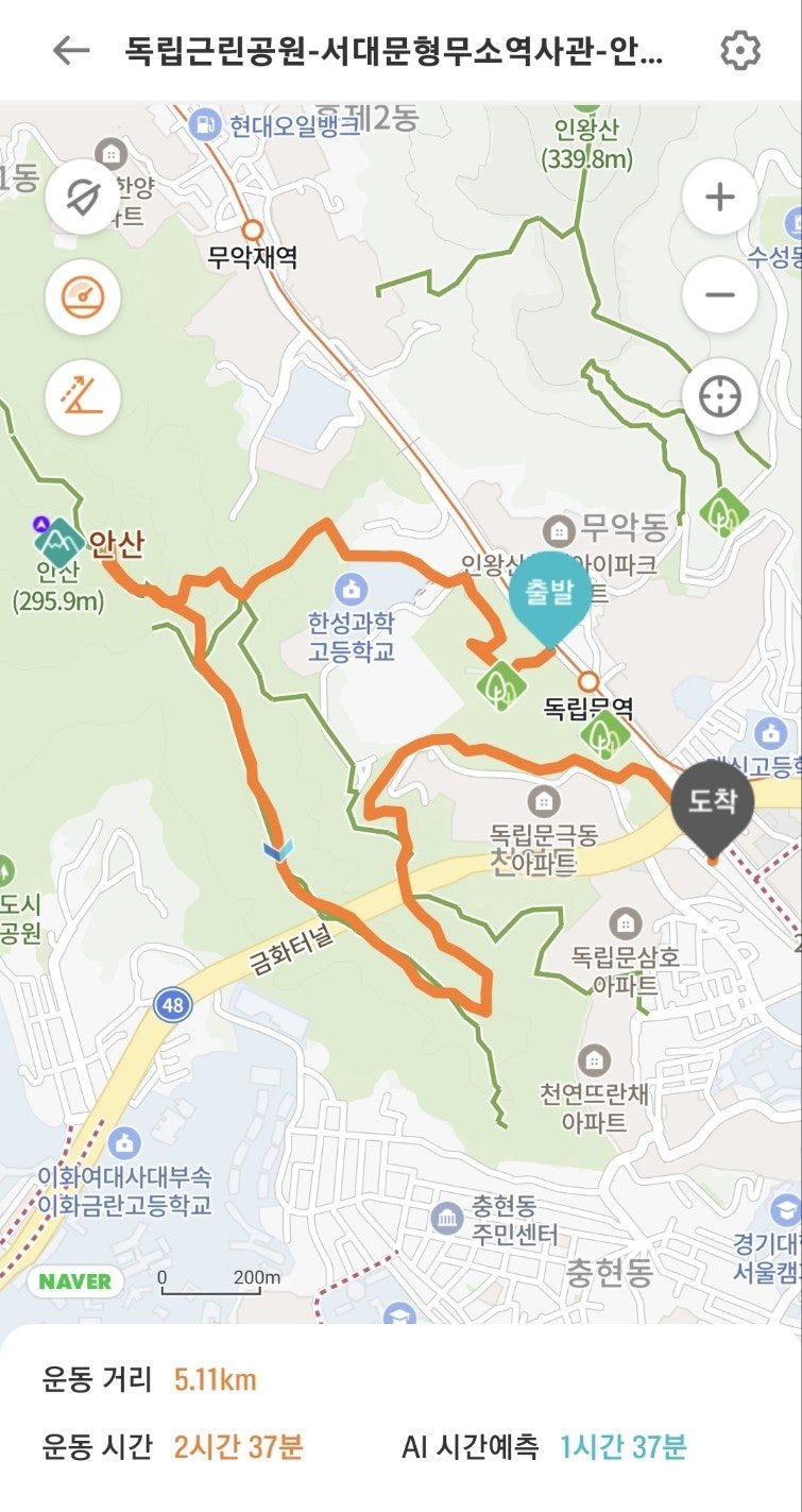 만날 장소(독립문)로 부지런히 이동하였네요...
