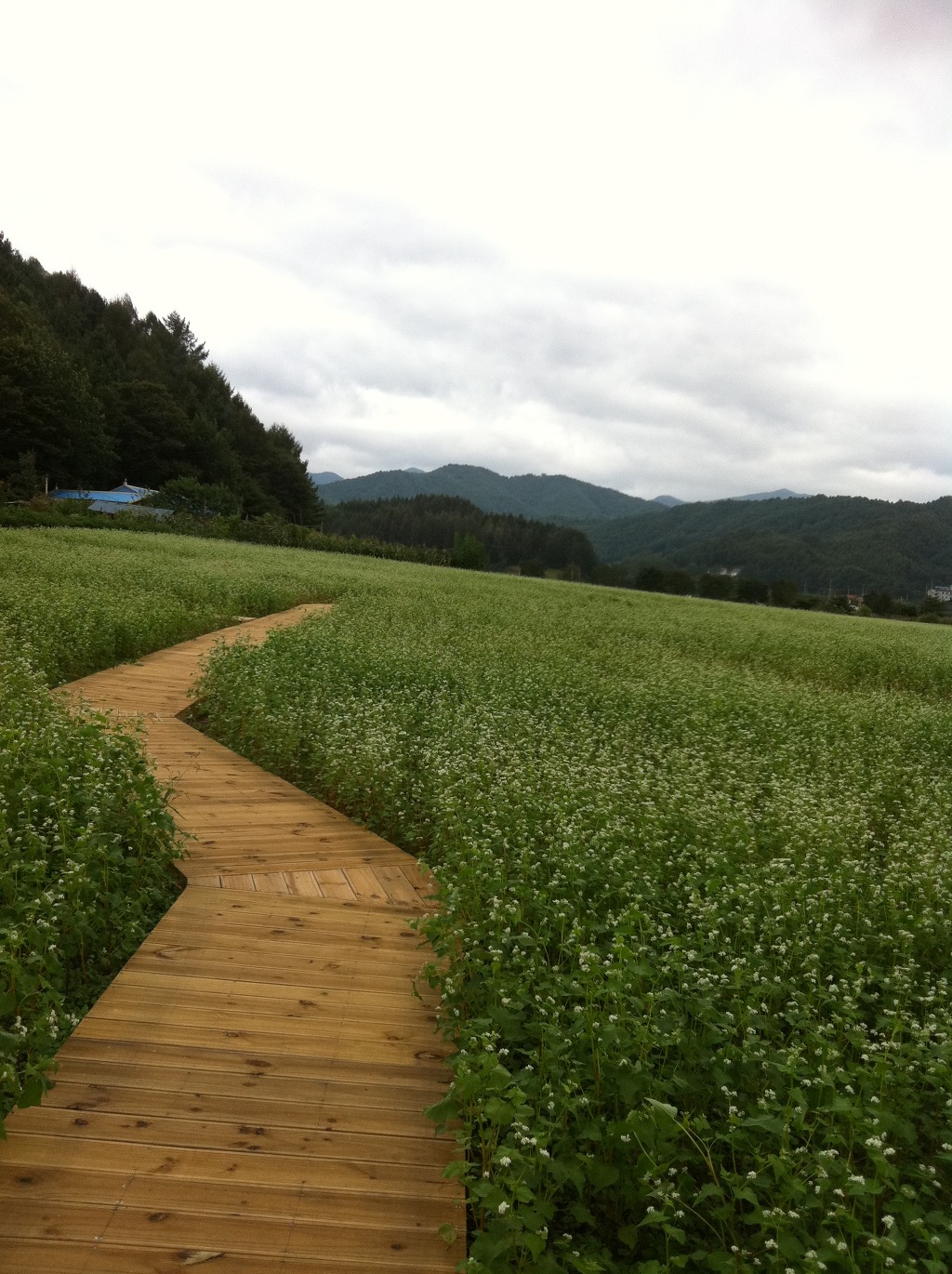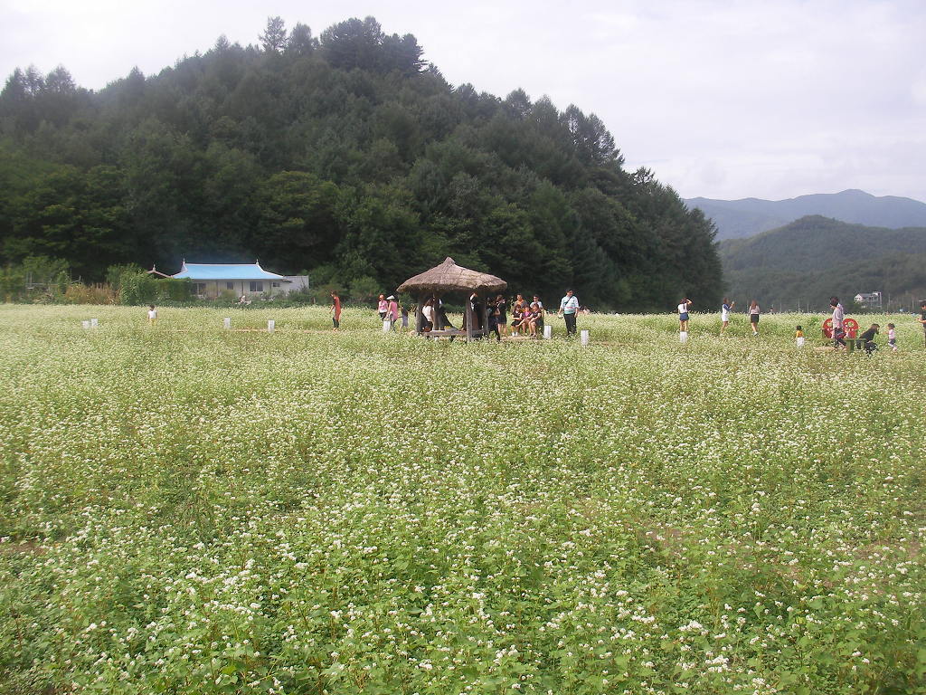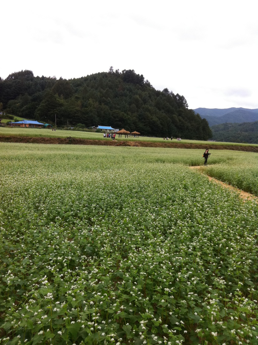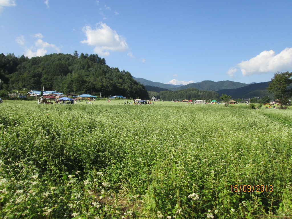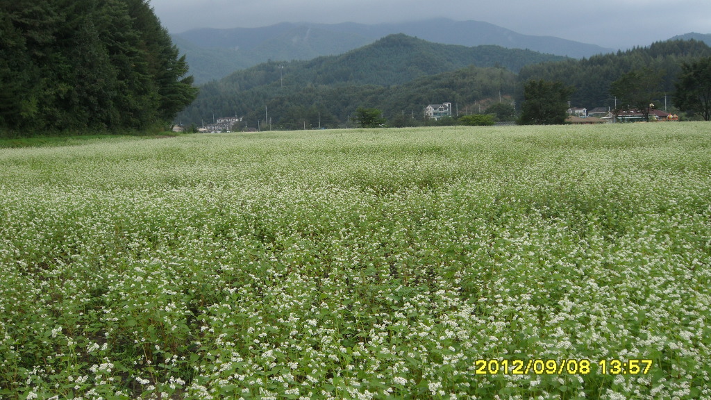 산허리는 온통 메밀밭 이라서 피기 시작한 꽃이 소금을 뿌린듯이