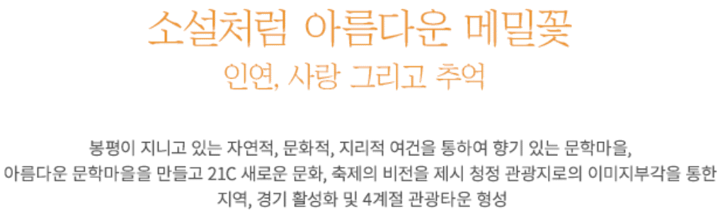 여행지 | 봉평 효석마을 메밀꽃 축제장+봉평시장+허브나라+대관령 양떼목장-강원 평창군 |