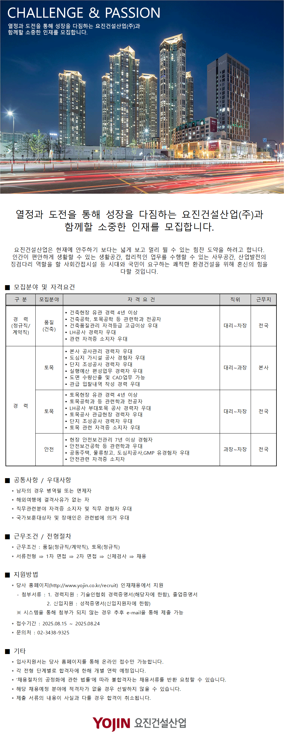| - 해당업체 사정상 조기 마감될 수 있습니다. - 본 정보는 국내 최초, 최대의 건설전문취업포털 1위 [건설워커]에서 제공합니다. - 건설/건축/토목/인테리어 등 채용정보 제공 [건설워커 - www.worker.co.kr] |