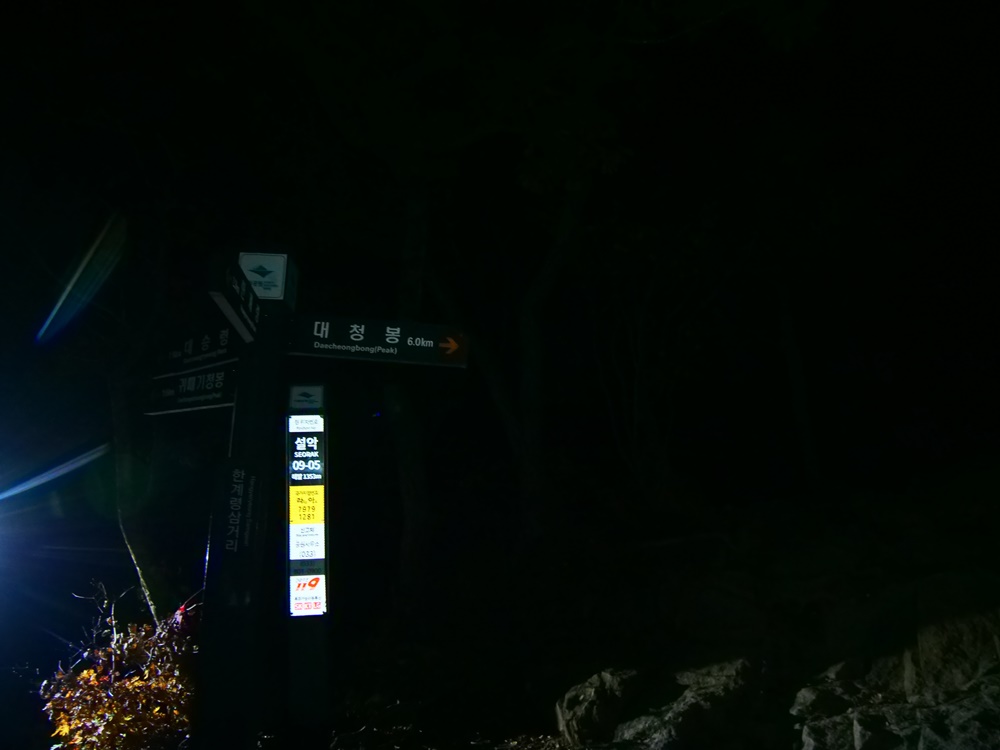 > 한계령(04:04)-한계삼거리(05:21/2.2km)-끝청(07:22/6.09km)-중청(07:48/7.13km)-소청(08:02/7.69km)-