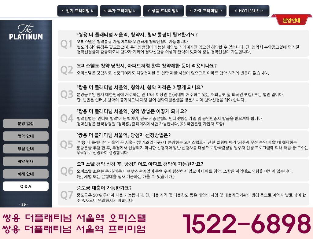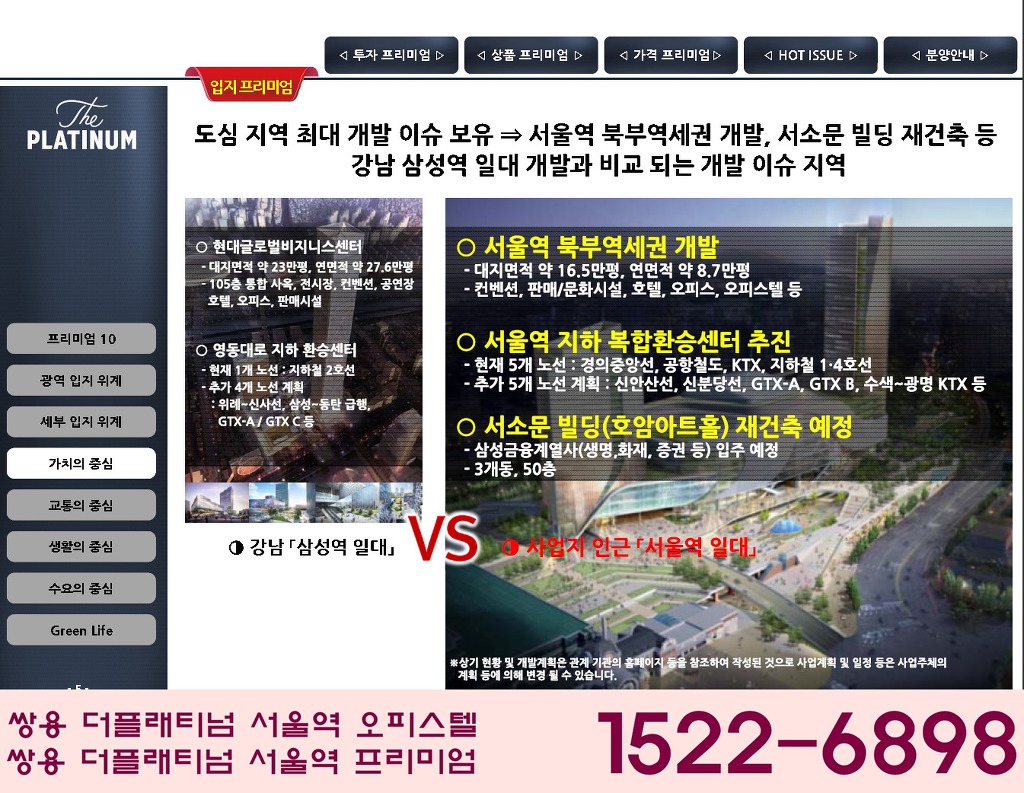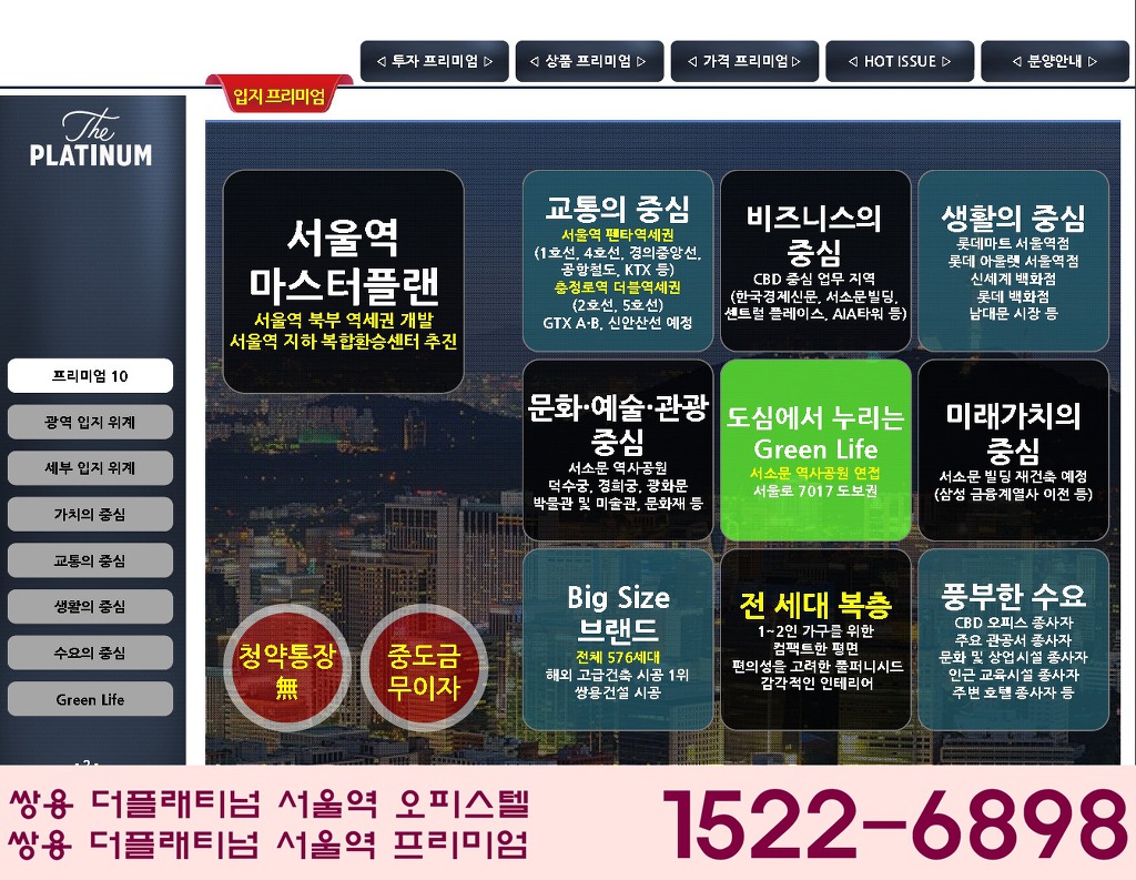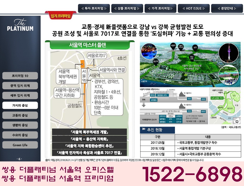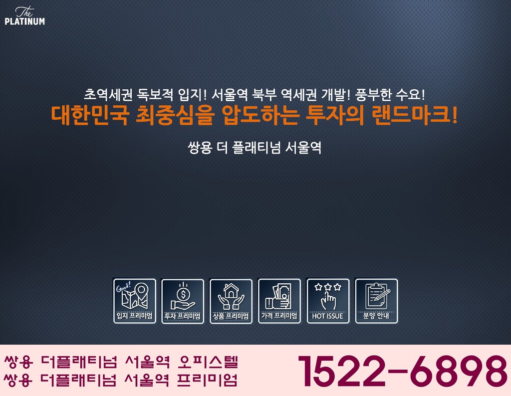 ▣ 2020년 대박현장! 지하철 7개노선 초역세권, 공세권의 서울역 쌍용 더플래티넘 대규모 복층 오피스텔