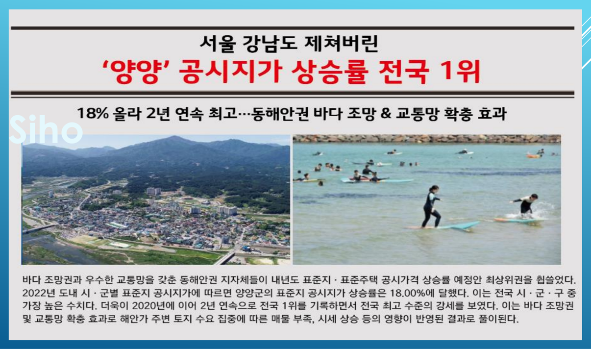 해마다 땅값은 오릅니다. 공시지가 라고 하지요.