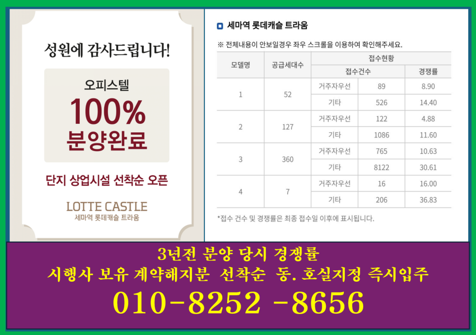 롯데캐슬 트라움 │ 준공완료 즉시입주 잔여호실