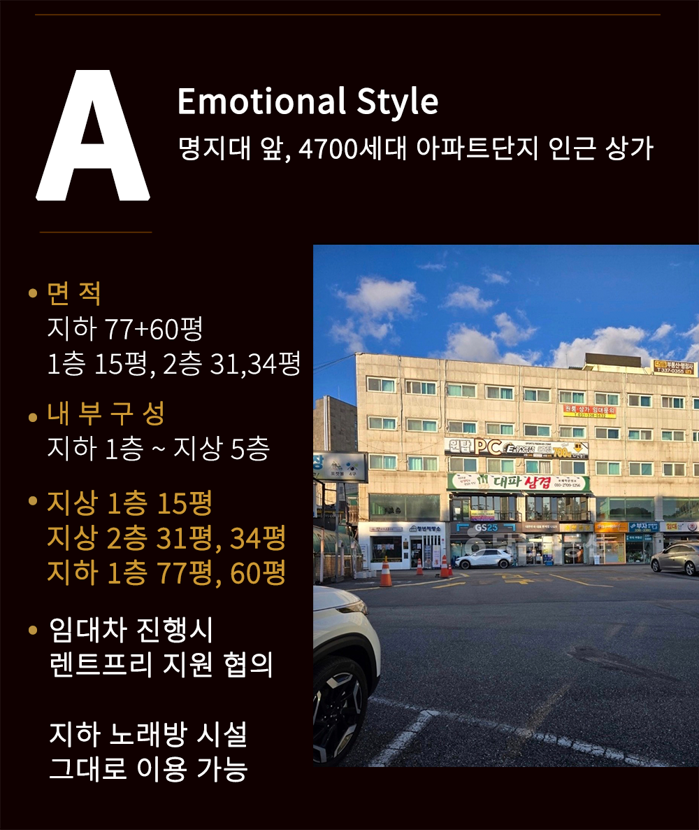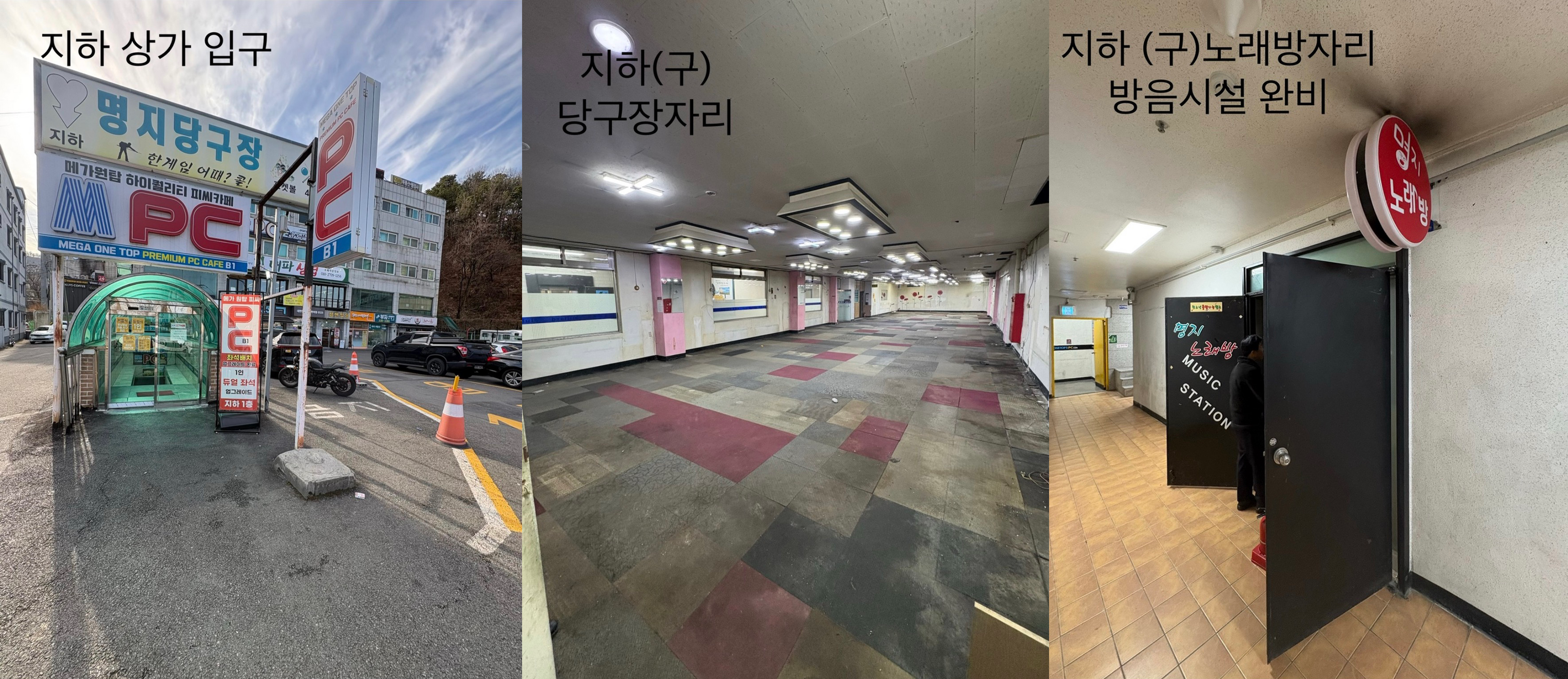 경기도 용인시 명지대학교 바로 앞 상가, 1층 15평, 2층 31~34평, 지하 60평 노래방, 지하 77평 총 5개 호실 임대 합니다