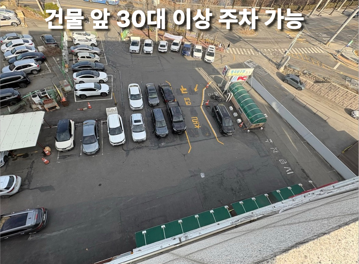 건물 앞 마당에 30대 이상의 차량을 주차할 수 있어,