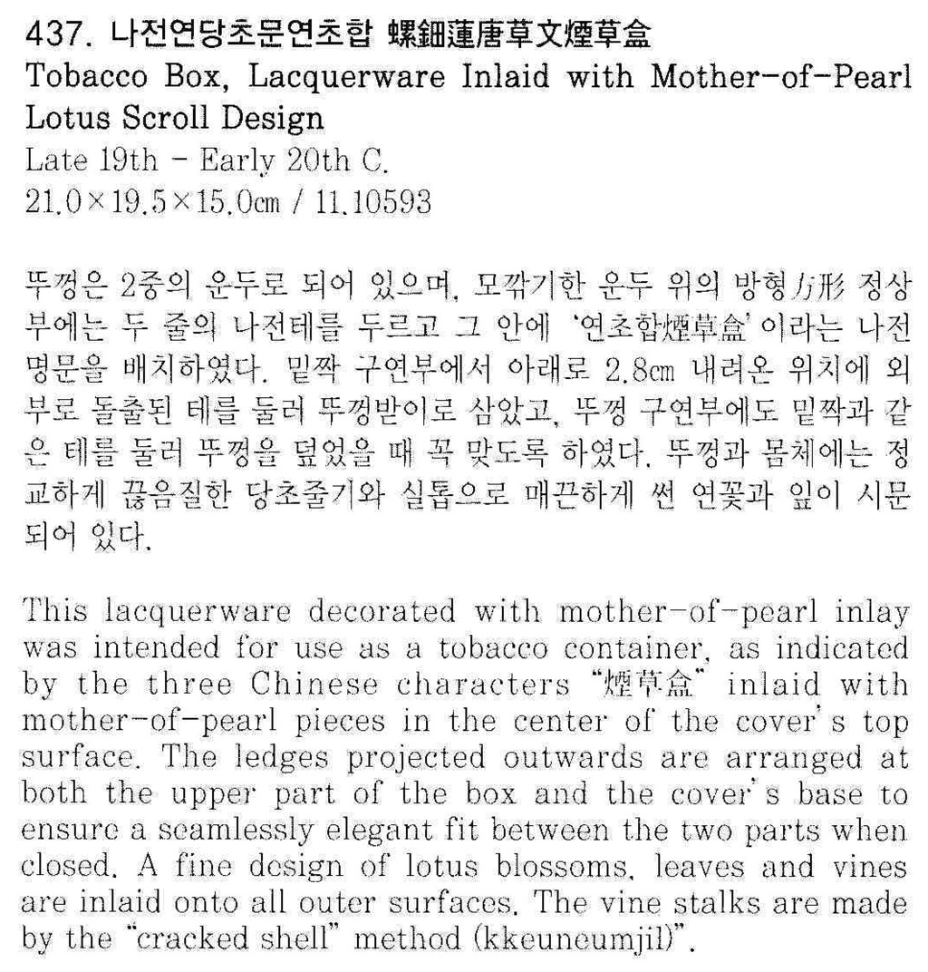 나전당초문연초합 작성자바위|작성시간11.05.04|조회수58 목록 댓글 0 글자크기 작게가 글자크기 크게가 나전당초문연초합 미국 보스턴 박물관 소장 다음검색 현재 게시글 추가 기능 열기 북마크 공유하기 신고 센터로 신고 댓글 댓글 0 댓글쓰기 답글쓰기 댓글 리스트