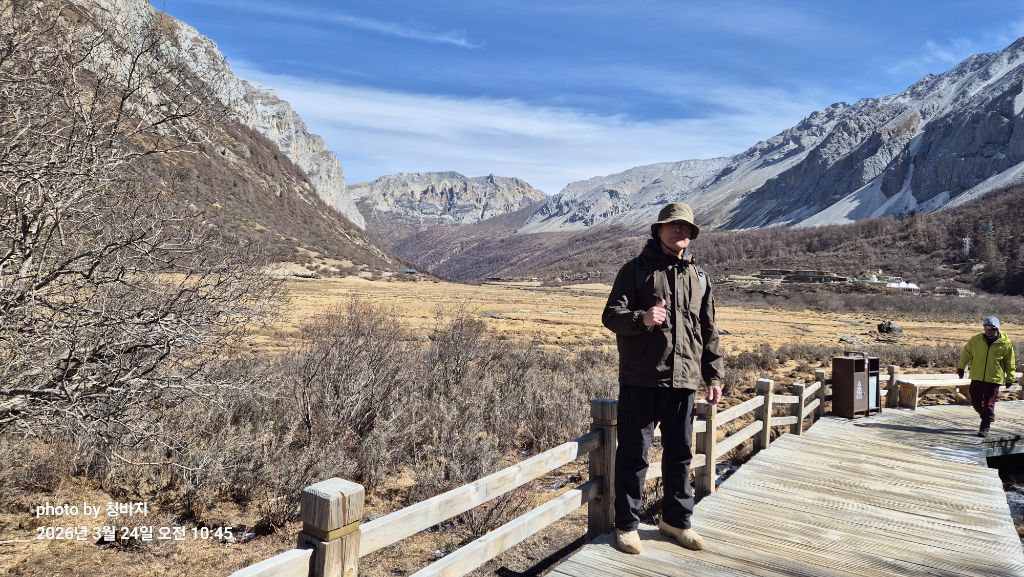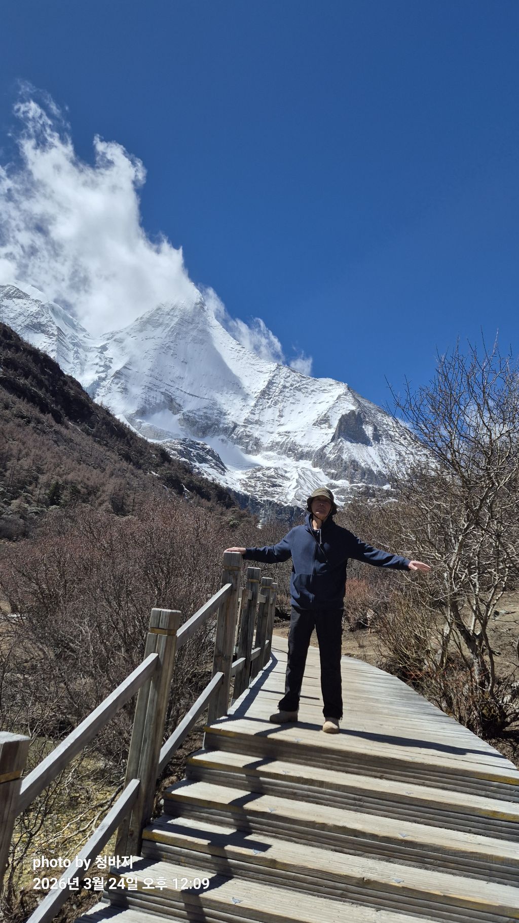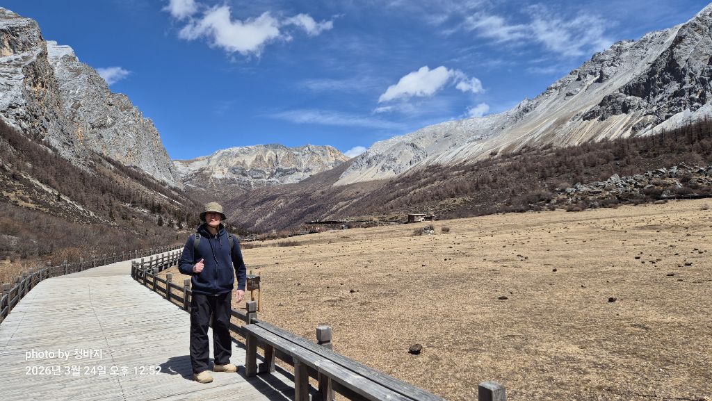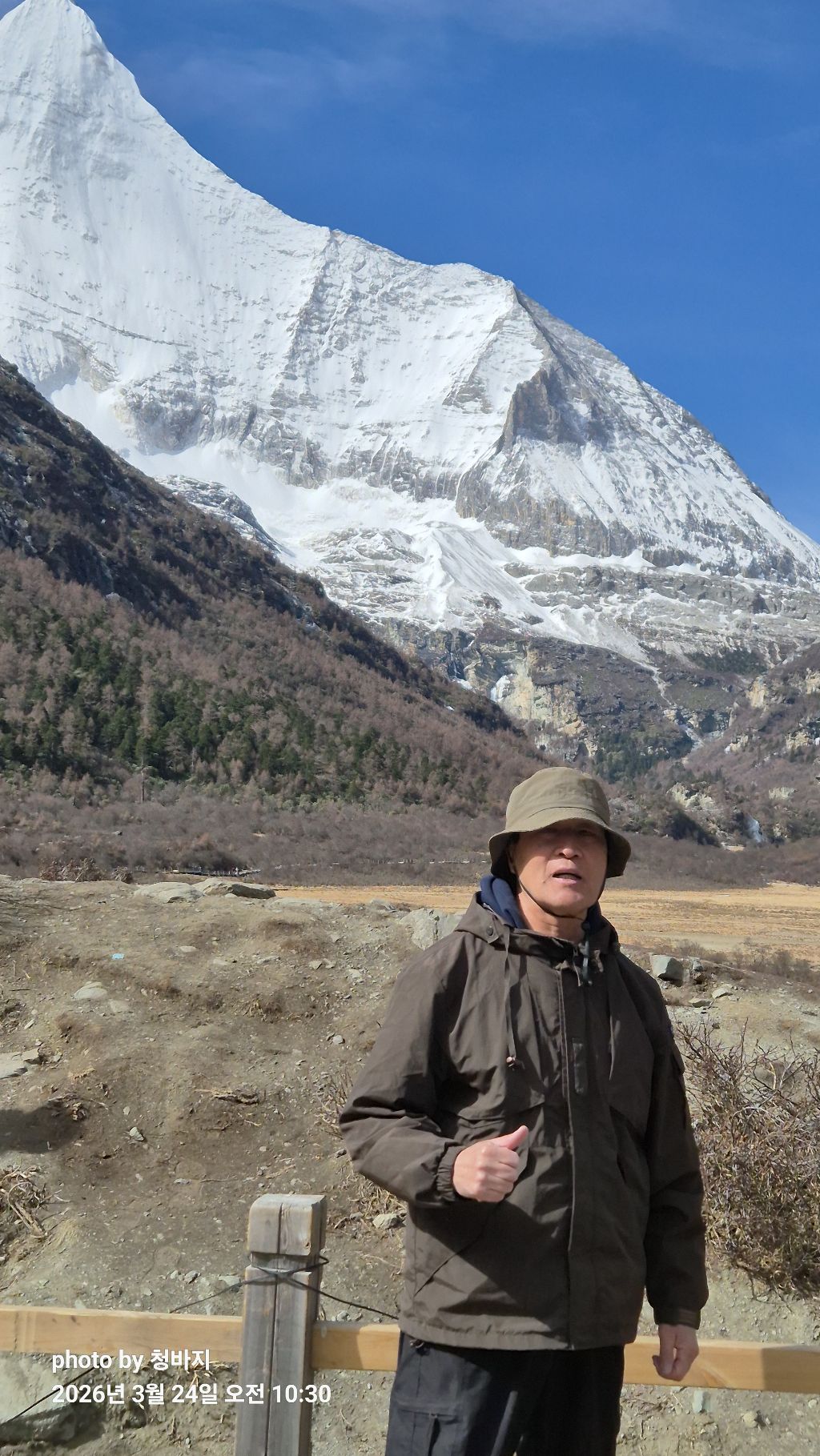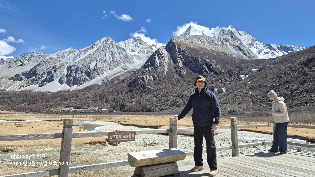 설산 앞에서 개~폼 잡다가