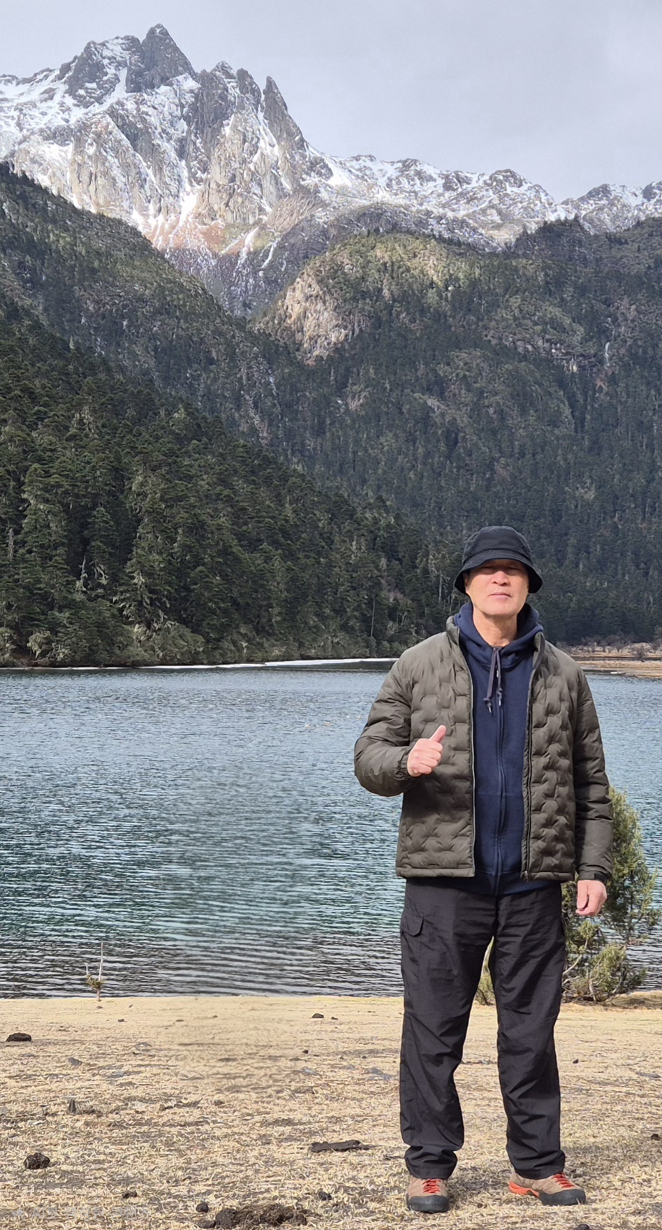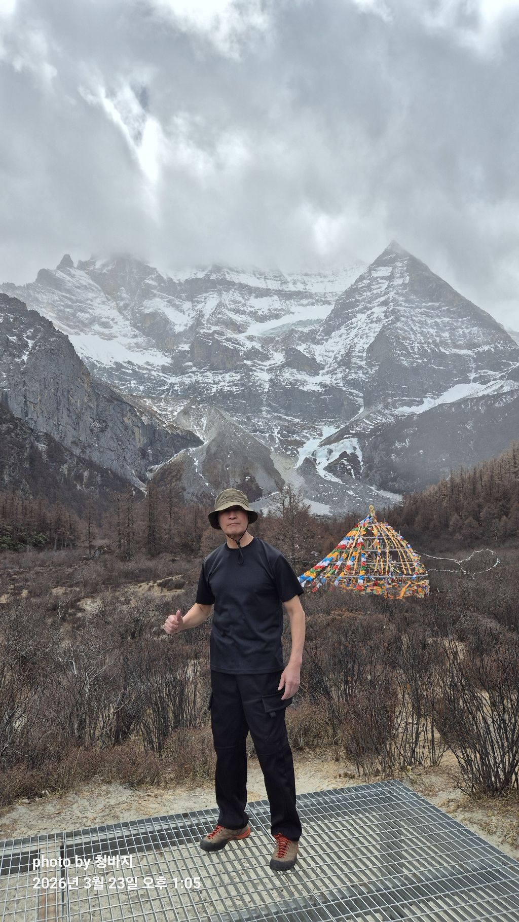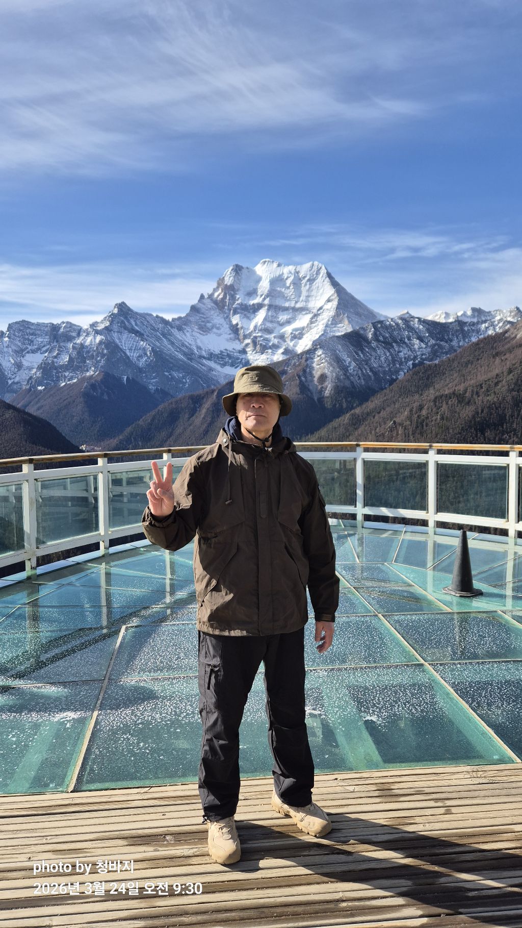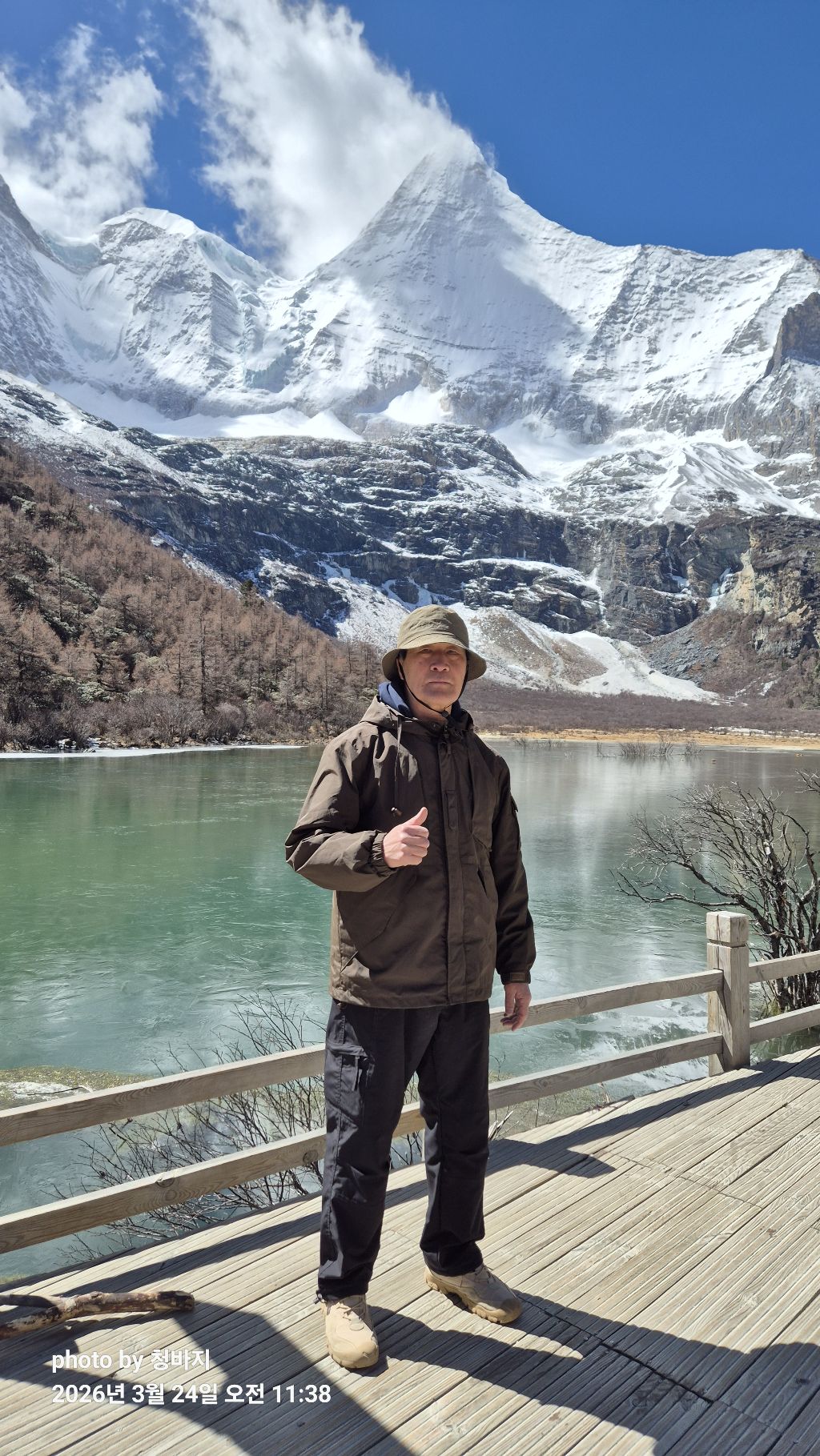 설산 앞에서 개~폼 잡다가