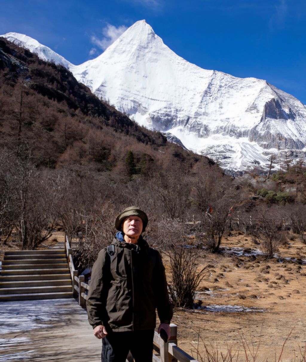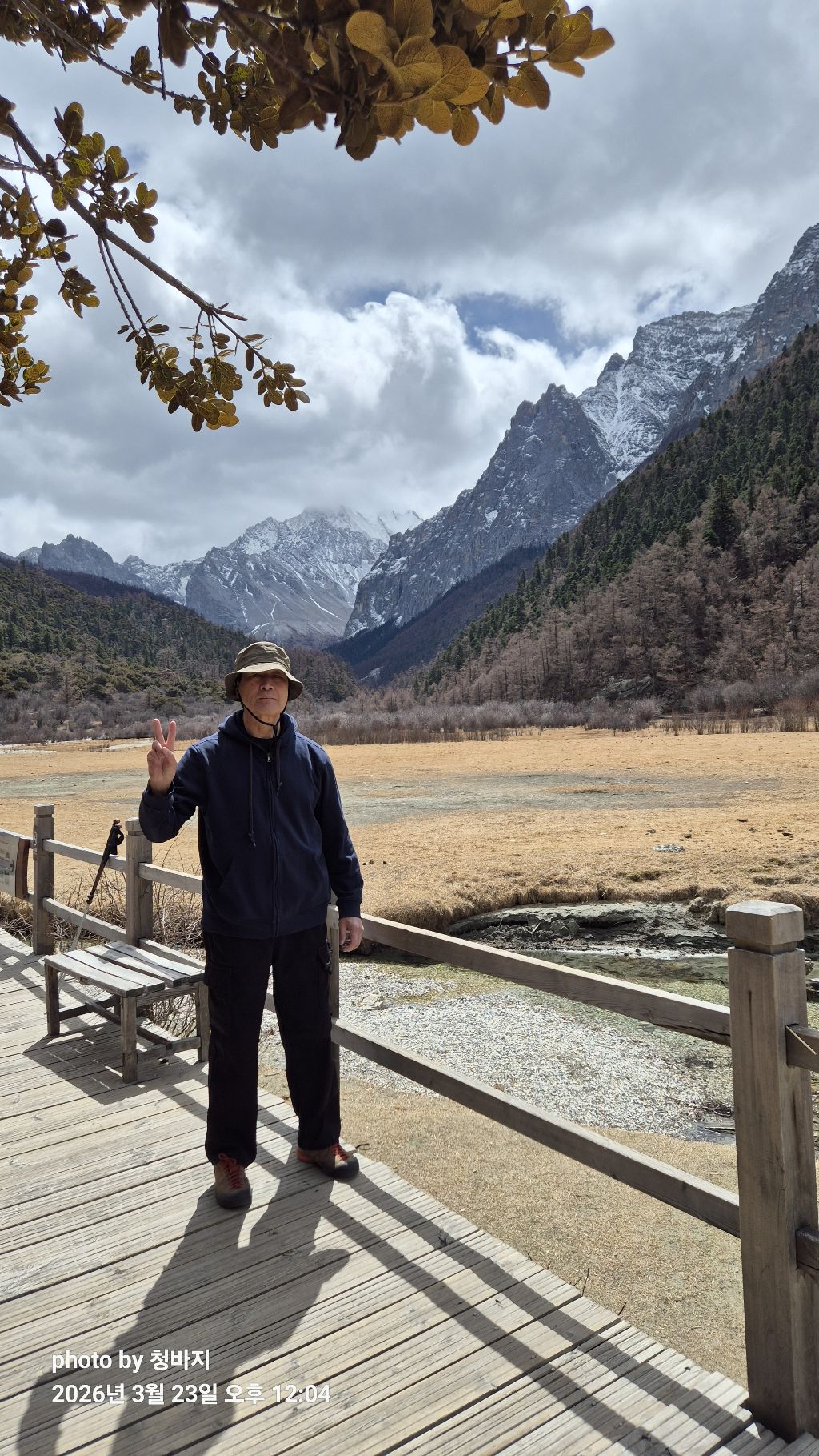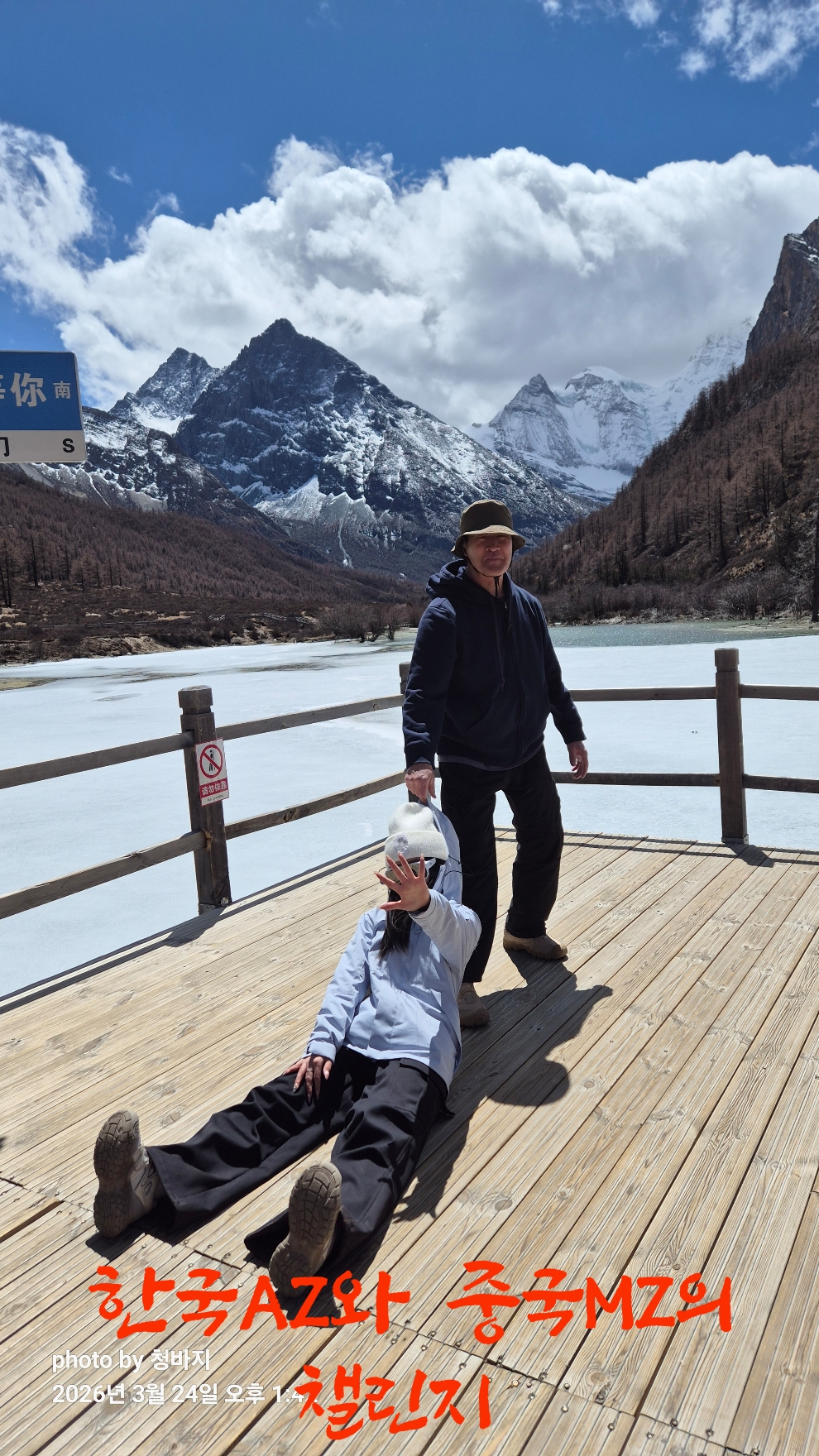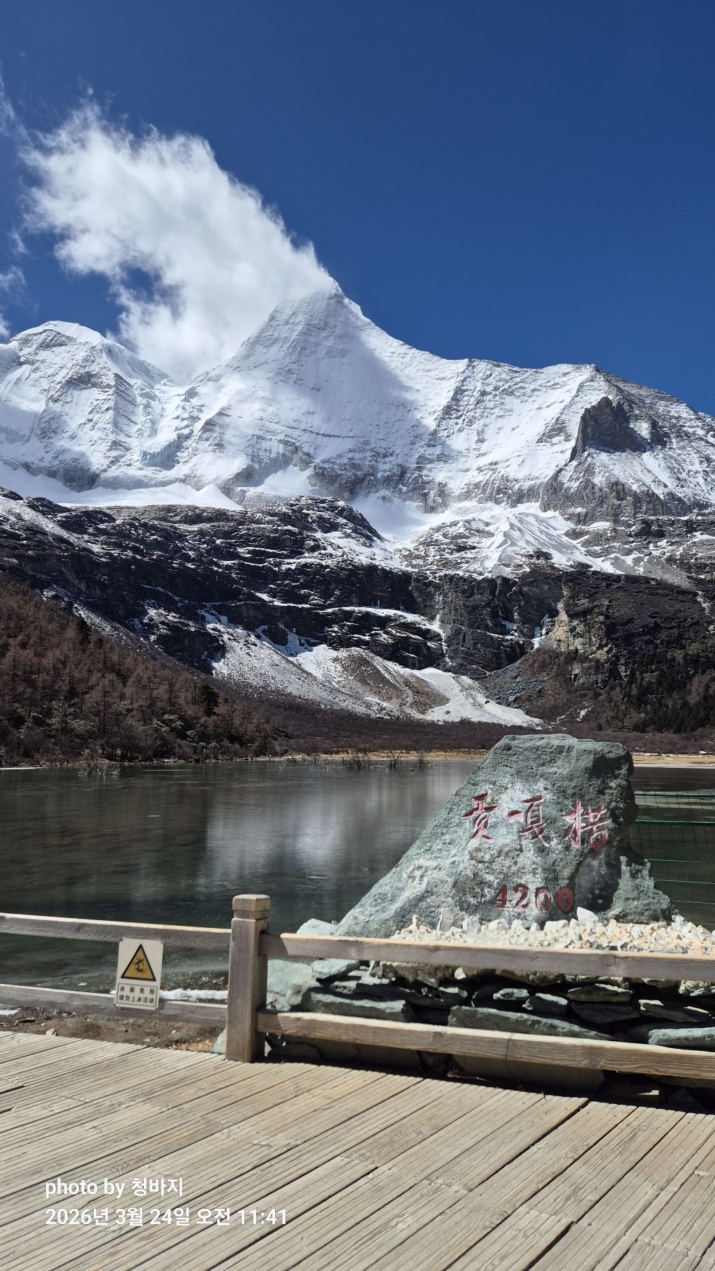 설산 앞에서 개~폼 잡다가