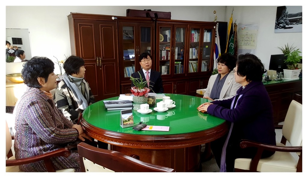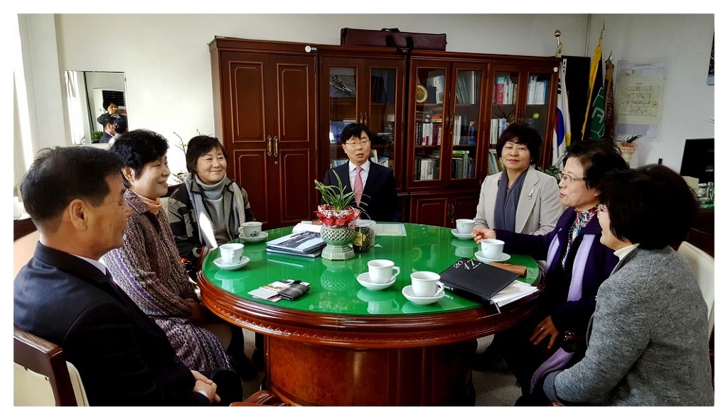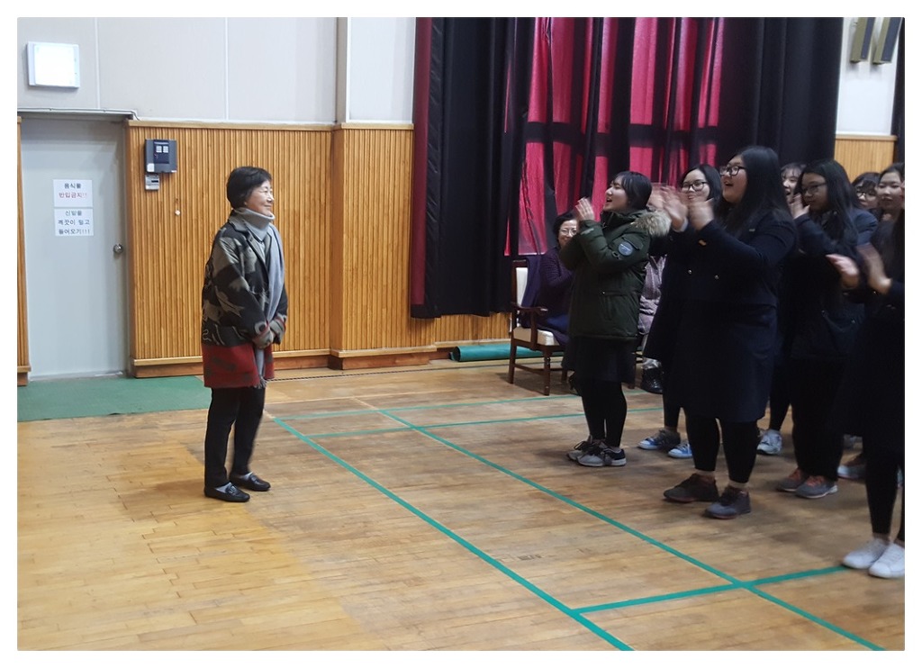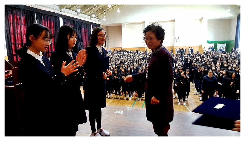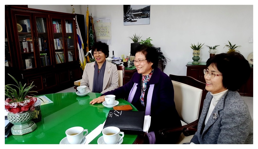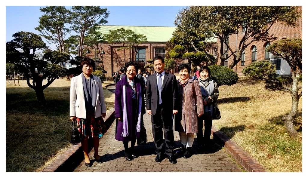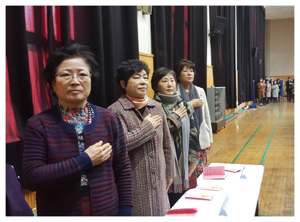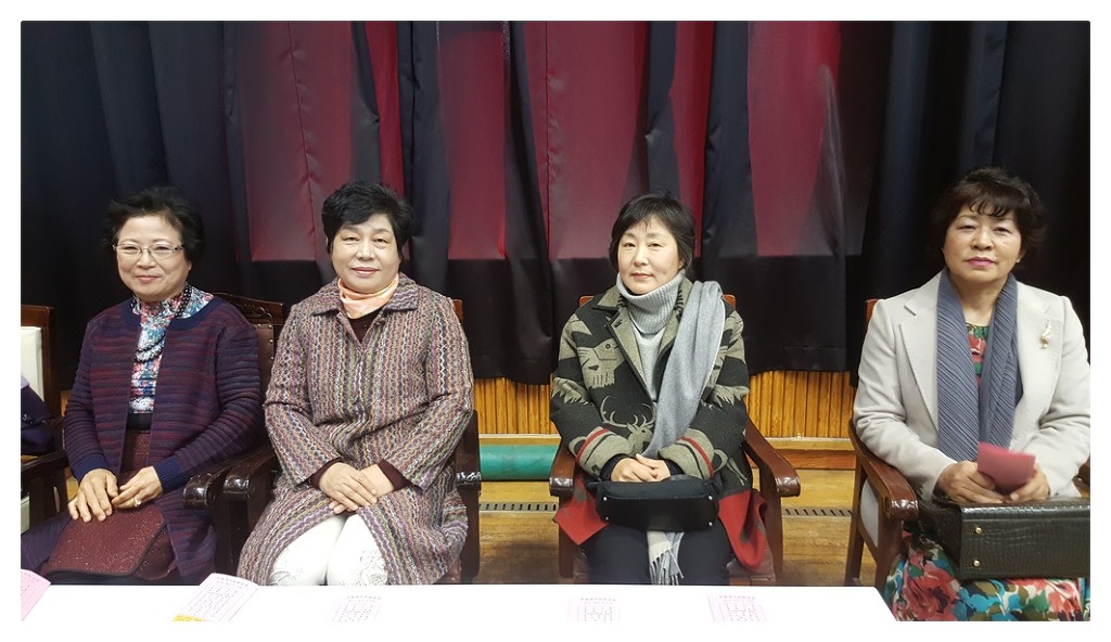 입학식 참가하신 안옥련 회장님, 김계선고문님, 이민숙사무국장, 윤덕점편집팀장