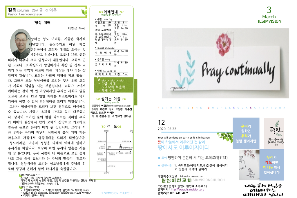 2020.03.22 교회소식 작성자Charl|작성시간20.03.21|조회수1,083 목록 댓글 0 글자크기 작게가 글자크기 크게가 다음검색 현재 게시글 추가 기능 열기 북마크 공유하기 신고 센터로 신고 댓글 댓글 0 댓글쓰기 답글쓰기 댓글 리스트