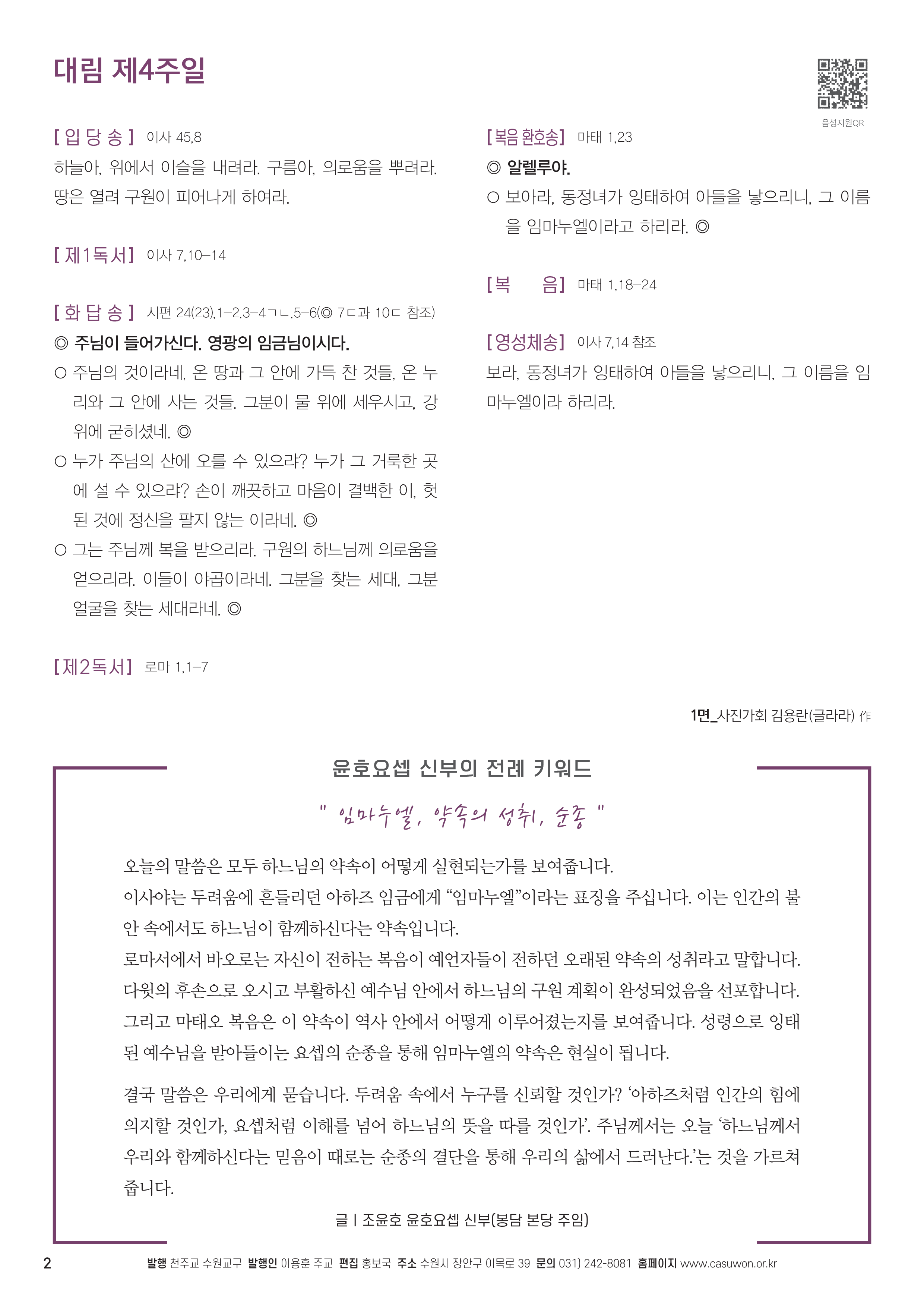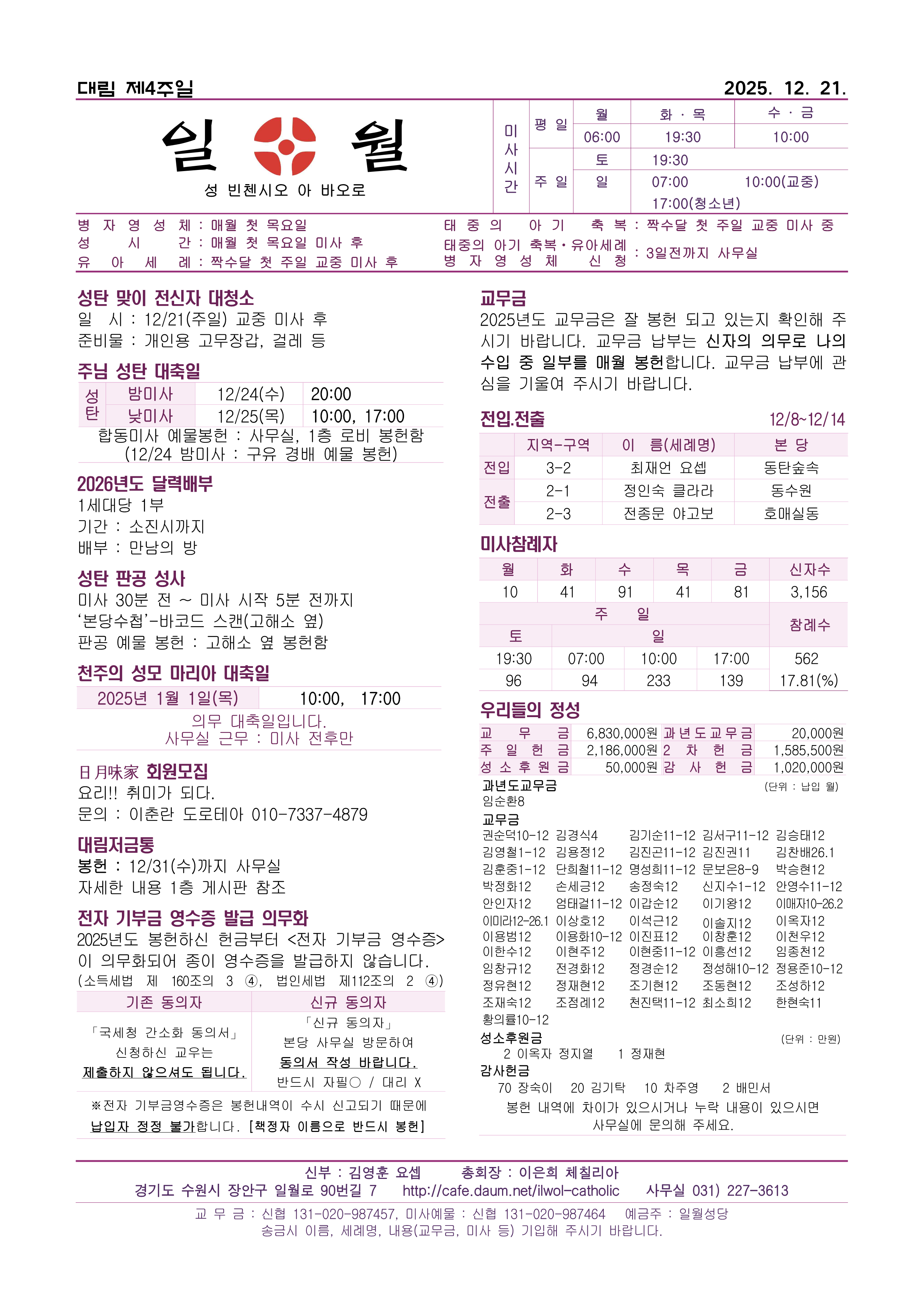 2025년 12월 21일 대림 제4주일 작성자박미숙 체칠리아|작성시간25.12.27|조회수35 목록 댓글 0 글자크기 작게가 글자크기 크게가 다음검색 현재 게시글 추가 기능 열기 북마크 공유하기 신고 센터로 신고 댓글 댓글 0 댓글쓰기 댓글 리스트