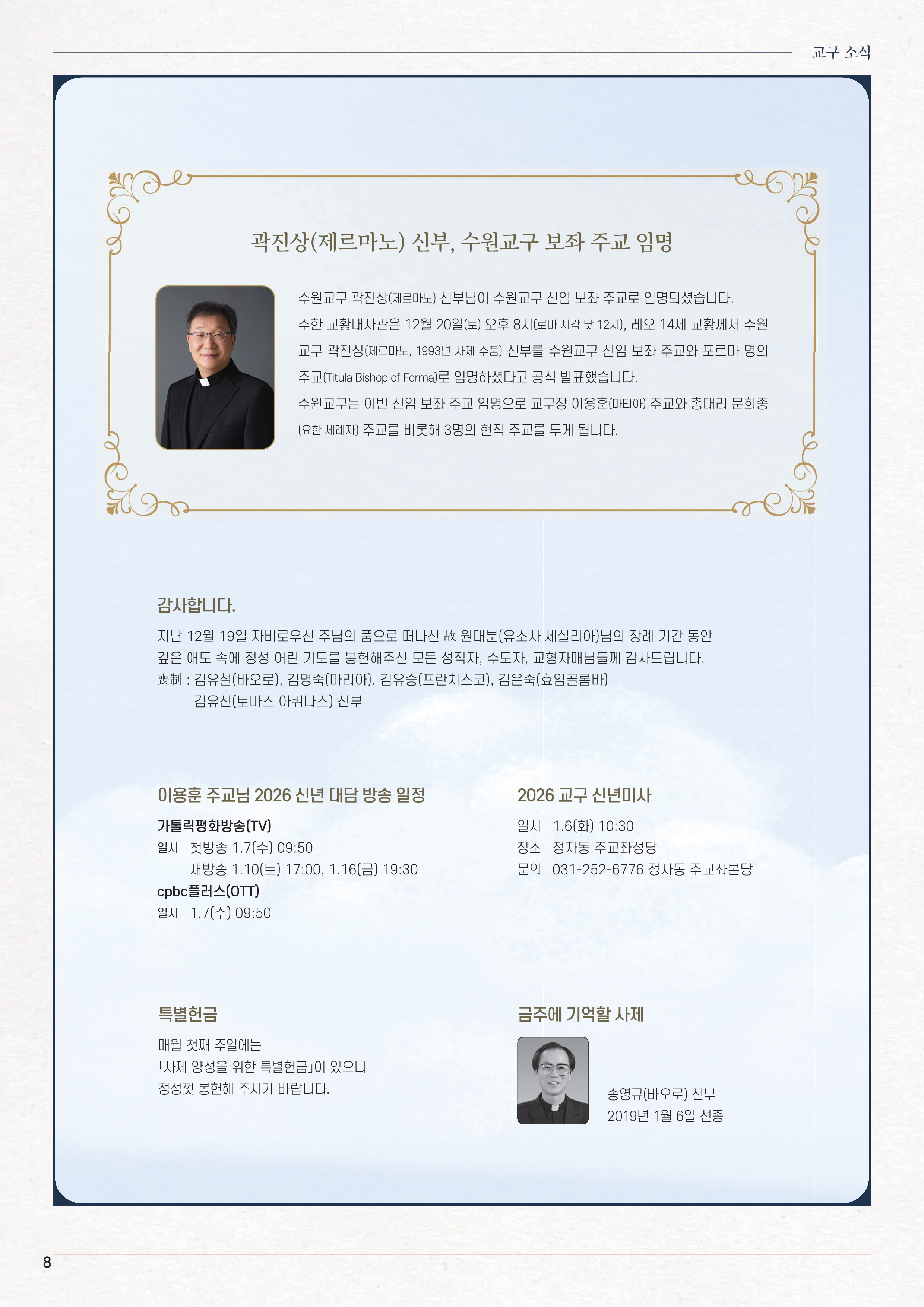 2026년 1월4일 주님 공현 대축일 작성자박태화 안나|작성시간26.01.04|조회수69 목록 댓글 0 글자크기 작게가 글자크기 크게가 다음검색 현재 게시글 추가 기능 열기 북마크 공유하기 신고 센터로 신고 댓글 댓글 0 댓글쓰기 댓글 리스트