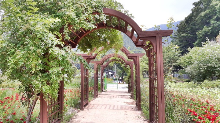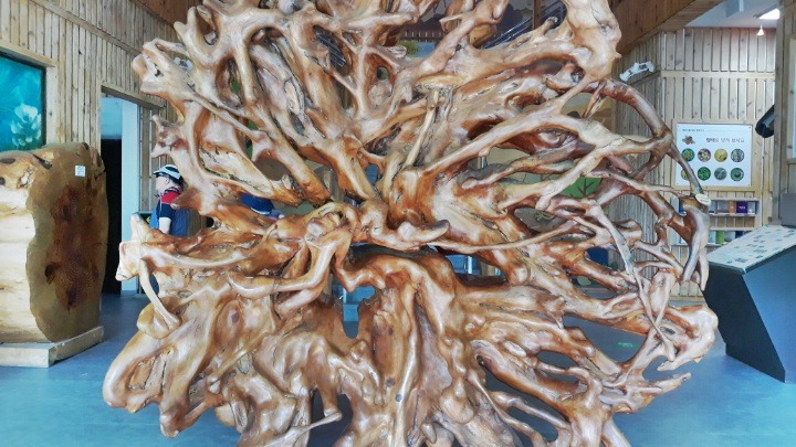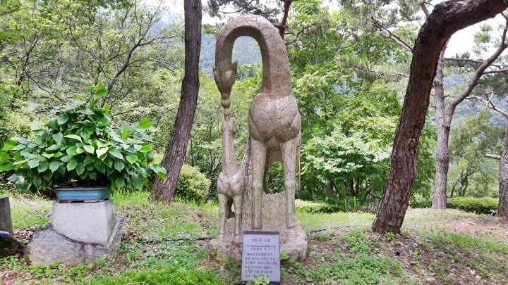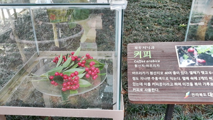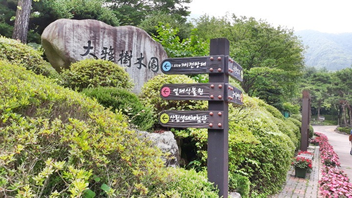 ♥ 2019년 7월 14일(日曜日). 07:00. ♥ 場所 : 전북 완주 대아산 수목원 탐방코스. ☞ 가는 길 : 07:00(삼천포 축협 출발) → 08:02(사천 IC, 대진 고속국도 진입) → 08:25-35(산청휴게소) → 육십령터널, 장수 분기점, 장수터널 → 09:20-30(마이산휴게소) → 09:53(완주 IC 나옴) → 10:20(새재) → 10:32(전북 완주군 동상면 대아산 수목원 주차장 도착), ☞ 산행코스 : 대아수목원 주차장 → 수목원 압구 → 푸르미쉼터 → 풍경뜰 → 산림문화 전시관 → 분재, 조각원, → 장미원 → 열대식물원 .→ 조각공원 → 전망대, → 나무미로 → 어린이 놀이터 → 수생식물원 → 푸르미쉼터 → 대아수목원 주차장(3km 4시간 소요). ☞ 세부 산행코스 10:45 : 대아수목원 주차장 산행시작. 10:45 : 대아수목원 입구, 10:47 : 푸르미 쉼터. 10:52 ; 풍경뜰. 10:54 : 산림문화 전시관. 11:00 : 분재원. 11:10 : 열대식물원. 11:12 : 장미원. 11:20 : 전망대. 11:25 ; 조각공원. 11:37 : 나무미로, 어린이 놀이터. 11:40 : 수생식물원. 11:42 : 순환임도 입구. 11:42 : 푸르미 쉼터. 12:00 : 꽃길 공원에서 점심(12:10-13:20). 13:40-14:40 : 대아수목원 주차장 다리 아래 계곡 휴식. 15:55 : 대아수목원 주차장 출발. 16:00-30 : 높은상회 후식. 16:55-17:17 : 위봉폭포. 17:30-18:00 : 완주 순두부 석식, ☞ 오는 길 : 18:10(완주 IC 진입) → 19;12-22(산청 휴게소) → 20:00(사천 IC 나옴) → 20:40(삼천포 도착). ♥ 이웃한 봉우리 : 운암산(597m) ♥ 산행 위치 : 전북 완주군 동상면 대아수목로 94-34(대아리 산 1-2번지). ♥ 특기사항 : 대아수목원(大雅樹木園)은 소백산맥을 이루는 운장산의 지류로 완주군 동상면 대아리에 위치하며 전북 산림환경 연구소가 관리 운영하는 도립수목원으로 대아저수지 맑은 물과 각종 수목, 대단위 금낭화 자생군락지, 야생화 관찰로, 숲길산책로 등 아름다운 자연환경으로 약150헥타에 1988년 7월 10일 조성공사를 시작하여 1995년 5월 17일 개원하였는데 8개원(침엽수, 활엽수, 유실수, 약용수, 밀엽수, 관상수, 수생식물, 난대식물원)에 319종 6만7천여 본, 온실에는 123종에 5백여 식물들이 살고 있으며 93평의 자료실에 12개 분야에 9백여 점이 전시되어 있다. 식물보유현황은 2015년 현재 2,584종(초본 - 1,338종, 목본 – 1,246종) 30여만그루의 관상수와 이들 중에는 희귀 및 특산식물(산림청 지정) 135종류가 포함되어 있다. 산림문화 전시관. 열대식물원, 산림생태체험관. 분재원. 임간교실. 약수터와 쉼터, 전망대 등을 갖춘 아늑한 분위기의 휴식공간으로 연중무휴. 입장료, 주차료가 무료이기에 인기가 많은 수목원이다. ▲ 07시 삼천포 축협 앞 출발하여 08시 02분 사천 IC, 대진 고속국도 진입, 산청휴게소(08:25-35)에서 휴식, 육십령터널, 장수분기점, 장수터널을 통과, 마이산휴게소(09;20-30)의 전망대 정쟈에서 1억년 전에 수성암이 지각변동으로 생성된 말의 귀를 닮아 붙여진 마이산의 암마이봉(686m)과 수마이봉(680m), 봄엔 돛대봉, 여름엔 용각봉, 가을엔 마이봉, 겨울엔 문필봉이라 불리우는 마이산을 멀리서 구경하고, ▲ 09시 53분 완주 IC로 나와 10시 20분 새재에서 운암산 1코스(새재 → 운암산 → 뒤골난망이 → 대왕폭포 → 대아수목원 주차장), 2코스(새재 → 운암산 → 후리구석 계곡 → 대아수목원 주차장)를 산행할 31명 회원은 내리고, ▲ 10명만이 10시 32분 전북 완주군 동상면 대아산 수목원 주차장 도착하여 수목원을 산책할 예정이다. 5월 30일 저녁 대못에 찔려 2주 병원에 입원, 3주 통원치료하면서 45일만에 산행하게 되어 긴 산행은 힘들고 무리일것 같고 또 2011년 9월 18일 일요산악회에서 운암산 산행, 2015년 4월 26일 좋은사람들 산악회에서 대아산 소순환 코스, 2018년 9월 2일은 동행산악회에서 대아산 대순환 코스를 산행하였기에 대아수목원 산책코스를 선택하게 된 셈이다. ▲ 대아 수목원 입구. ▲ 대아 수목원의 첫 이정표. ▲ 대아 수목원의 푸르미 쉼터. ▲ 대아 수목원의 풍경뜰. ▲ 대아 수목원의 산림문화 전시관. ▲ 산림문화 전시관 입구 나무 조각상. ▲ 산림문화 전시관의 수목과 동물들. ▲ 산림문화 전시관 내부의 식용, 약용, 독버섯. ▲ 산림문화 전시관 내부의 수목 종류와 나무의 생김새. ▲ 열대식물원. ▲ 열대식물원에 자라고 있는 커피나무와 열매. ▲ 열대식물원에 자라고 있는 선인장 ▼