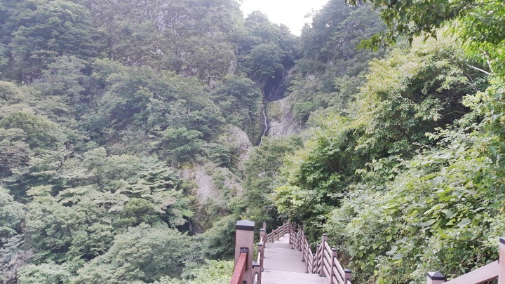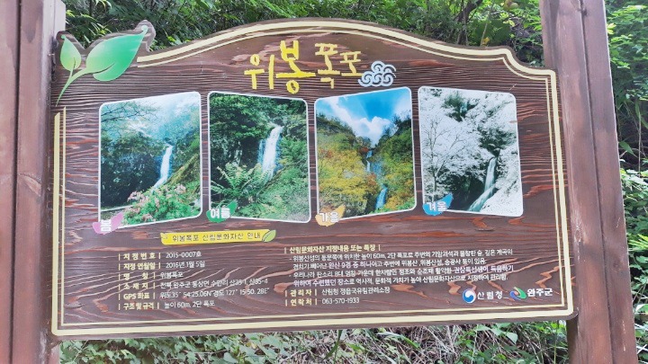 ▲ 우리나라 임도 100선에 2011년 3월 선정된 3km의 순환 임도 출발 지점으로 순환임도변에는 왕벚나무 560여구가 식재되어 있고 봄에는 벚꽃, 여름에는 그늘, 가을에는 단풍, 겨울에는 설경의 운치와 각종 야생화가 자생하여 볼거리를 제공하고 있다. ▲ 푸르미 쉼터 환원. ▲ 수목원 대순환코스에서 내려오면 만나는 아름다운 꽃길공원에서 점심(12:10-13:20).. ▲ 넓고 관리를 잘하고 있는 아름다운 꽃길공원. ▲ 아름다운 꽃길정원의 데크길. ▲ 운암산의 암릉. ▲ 13:40-14:40 : 대아수목원 주차장이 있는 다리 아래 계곡의 평상에서 더위를 식히며 운암산 코스 산행 회원들이 오기를 기다렸다가 15시 55분 대아수목원 주차장 출발. 위봉폭포를 구경하려 가는 길에 높은상회의 평상에서 후식(16:00-30). ▲ 대야댐을 내려다 보며 먹으니 꿀맛. ▲ 16시 55분 위봉폭포 입구 도착, 위봉폭포는 완주군 동상면 수만리 위봉산성 동문(산 35-1)에 위치한 폭포로 경치가 빼어나 완산 9경의 하나인 높이 60m의 2단 폭포로 우리나라 8대 명창인 조선후기의 권삼득 선생이 득음 수련한 장소라고 한다. ▲ 멀리 보이는 높이 60m의 2단 위봉폭포의 상단. ▲ 가까이서 본 위봉폭포. ▲ 세로로 당겨서 본 위봉폭포.