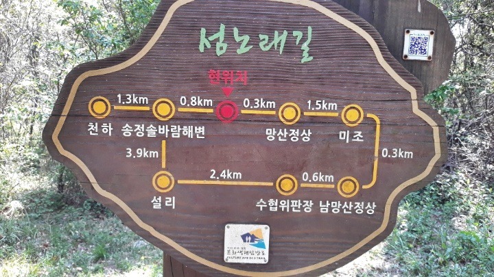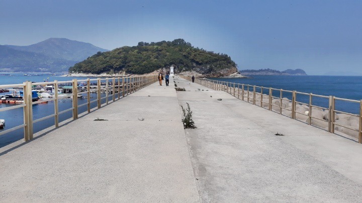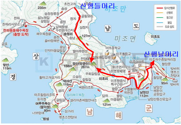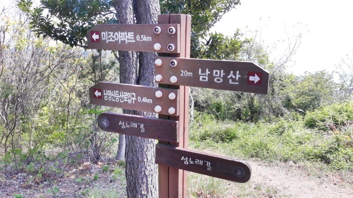 ♥ 2020년 4월 25일(土曜日), 09시, ♥ 場所 : 경남 남해 지맥 제 5구간 미조 망산(望山, 786m). ☞ 가는 길 : 09:00(삼천포 공설운동장 출발) → 09:10(창선, 삼천포 대교) → 지족, 물건, → 10:48(남해군 미조면 송정리 초전 고개 도착). ☞ 산행코스 : 송정 초전고개 → 86봉 → 돌담 → 사거리 안부(바래길이정표) → 망산 → 헬기장 → 미조 수협 위판장 → 남망산 → 빗바위 → 방파제 등대(약 5km, 3시간 소요). ☞ 세부 산행코스 09:50 : 송정리 초전고개 송정주유소 산행시작. 09:55 : 등산로 진입. 10:00 : 86봉의 정자. 공동묘지. 10:12 : 105봉. 10:17 : 돌담. 10:36 : 사거리안부 바래길(초전 1.53km/←송남 0.75km/설리 1.04km/미조 0.32km). 10:39 : 원목 계단. 10:42 : 전망바위 바래길(← 망산정상 0.2km, 미조 1.8km/→ 송정솔바람해변 1.3km). 11:00 : 망산 정상(망운산. 286.2m, ← 송정 1.8km/→ 미조 1.7km). 11:14 : 군부대 철망, 11:17 : 헬기장. 11:22 : 돌탑쉼터. 11:30 : 미조고개, 미조우체국, 미조수협 위판장. 11:38 : 남망산 입구 데크계단. 11:50 : 남망산 정상(110m, → 남망산 20m/← 남망산 등산로 입구 0.4km). 11:55 : 남해지맥 5구간 끝지점인 빗바위. 12:00 : 미조면 소재지. 12:37 : 미조섬 앞 방파제 등대 도착, 산행종료. 점심(12:50-13:20), ☞ 오는 길 : 13:50(미조 출발) → 설리해변 → 14:45-58(송정해수욕장) → 15:10-35(상주해수욕장) → 남해 이동면, 창선대교. 창선- 삼천포대교 → 16:30(삼천포 도착). ♥ 이웃한 봉우리 : 가마봉(454m). ♥ 산행 위치 : 경남 남해군 미조면 미조리, 설리. ♥ 특기사항 : 망산(286m)은 경남 남해군 미조면 미조리와 설리 사이에 있는 산으로 미조항, 한려해상국립공원의 바다와 많은 섬. 천하몽돌해수욕장, 송정 솔바람해수욕장, 설리해수욕장 등이 조망되는 뱌래길과 더불어 남해지맥(南海枝脈) 제 5구간의 끝지점이다. ▲ 09시 삼천포 중,고남해 바래길 4코스로 남해지맥(南海枝脈)의 끝지점이다등학교 앞에서 출발), 09시 10분 창선, 삼천포 대교를 지나 창선, 지족대교를 건너 물건 독일마을 통과, 10시 48분 남해군 미조면 송정리 초전 고개의 송정 주유소 도착, 3명은 낚시질, 2명은 남해 바래길 4코스로 남해지맥(南海枝脈)의 끝지점인 남망산과 빗바위, 2명은 이곳에서 망산 종주코스 산행을 위해 하차. ▲ 남쪽 밭고랑 농로를 따라 이곳 저곳을 헤메면서 산행시작. ▲ 나무가지에 리본이 달려있어 반갑고 안심하여 86봉을 오르기 시작. ▲ 11시 86봉에 오르니 정자와 옆으로 수백기의 평장의 공동묘지가 있고 남쪽으로 조망이 확 트이면서 가야할 127봉과 망산 정상이 오라는듯 내려다 보고 있다. ▲ 정자 쉼터 조망 : 가야할 남망산과 미조도 앞의 방파제. ▲ 묘목 수종을 가꾸는 재배지 수림. ▲ 10시 15분 105봉 정상 바위. ▲ 평원이 펼쳐지며 노루가 달아난다. 가야할 127봉과 망산. ▲ 능선을 오르는 등산로 옆으로 돌담이 이어진다, 지형의 경계? ▲ 10시 17분 127봉, 괴상하게 생긴 기암. ▲ 10시 36분 사거리 안부의 쉼터로 벤치, 섬바래길, 섬노래길 4코스인 천하몽돌해변 → 송정솔바람해변 → 망산 → 미조 → 남망산 → 수협위판장 → 설리 → 송정 솔바람해변 → 천하몽돌해변(12.3km) 안내판이 있다. ▲ 특이한 이정표(초전리 1.53km/←송남리 0.75km/설리 1.04km/미조리 0.32km). ▲ 급경사 오르막의 원목계단. ▲ 10시 42분 전망바위 이정표(← 망산정상 0.2km,미조 1.8km/송정솔바람해변 1.3km). ▲ 전망바위 조망 : 섬노래길 4코스 시작점 천하몽돌해변과 송정솔바람해변. 뒤로 금산. ▲ 전망바위 조망 : 섬노래길 4코스 시작점 공동묘지, 지나온 능선. ▲ 전망바위에서 기념사진 한컷. ▲ 망산 정상. ▲ 11시 망산(망운산. 286.2m) 정상 도착. 정상엔 정성석이 없고 대신 삼각점, 돌을 쌓아 건립한 산불감시초소, 남쪽 아래에 전망데크가 있다. ▲ 망산 정상 바래길 이정표(← 송정 1.8km/→ 미조 1.7km). ▲ 망산 정상 조망 : 동남쪽의 죽암도. 조도. 호도. ▲ 망산 정상 조망 : 남쪽의 사도. 애도. 호도. ▲ 망산 정상 조망 : 동쪽의 설리해수욕장. ▲ 망산 정상에서 기념사진. 데크 전망대에서 첫 휴식 겸 막걸리 한잔. ▲ 11시 14분 군부대 출입 통제 안내문. 조용히 왼쪽 우회. ▲ 헬기장에서 되돌아 본 군부대. ▲ 군부대 아래 이정표(← 망산정상 0.9km/→ 미조 0.7km, 남망산 1.4km). ▲ 세번째 헬기장에서 되돌아 본 망산 정상과 군부대. ▲ 11시 22분 돌탑 쉼터. ▲ 11시 22분 미조고개에서 내려다 본 미조우체국.수협위판장. ▲ 멸치를 경매하고 있는 미조 수협위판장 내부. ▲ 남망산을 오르는 진입로. ▲ 남망산을 오르면서 되돌아 본 지나온 망산, 군부대 능선. ▲ 11시 50분 남망산(110m) 정상 도착. 정상은 넓은 평지 잔디밭으로 정자 쉼터 조망처와 많은 체육시설물이 있어 미조 주민들이 많이 이용하고 있다. ▲ 남망산 정상 조망. ▲ 남해 바래길 안내도. 바래는 옛날 남해 어머니들이 바다를 생명으로 여기고 가족의 생계를 위하여 바다가 열리는 물때에 맞추어 갯벌에 나가 파래나 미역, 고동 등 해산물을 손수 채취하는 작업을 말하며 그때 다니던 길을 바래길이라고 한다. ▲ 남망산 정상아래 이정표(→ 남망산 20m/← 남망산 등산로 입구 0.4km). ▲ 남해 지맥 제 5구간 끝지점 빗바위. ▲ 남해지맥 4. 5구간 산행