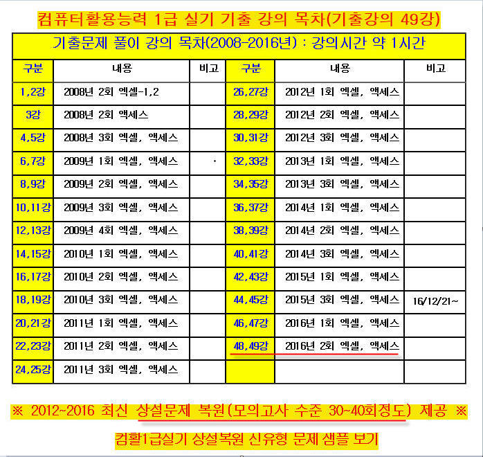 컴활1급 필기 합격하고 실기 준비하려고 하는데 1급실기는 많이 어렵다 해서 인강 들으려 합니다.