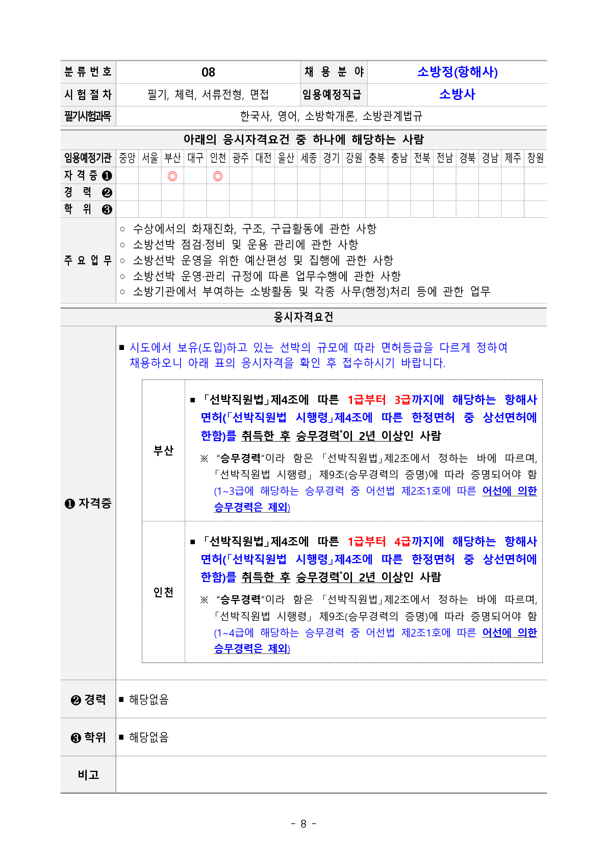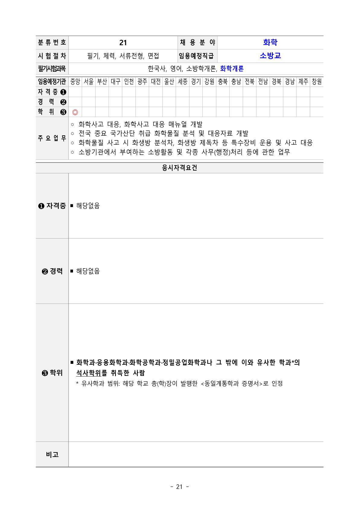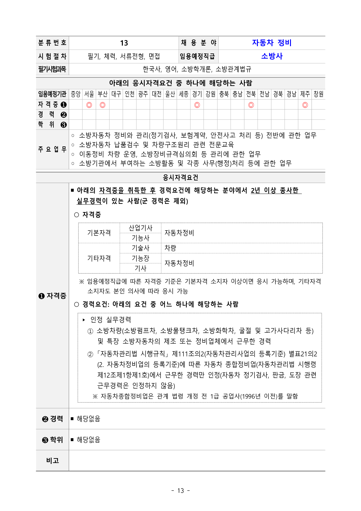 2023년도 소방공무원 채용시험 경력경쟁채용 응시자격기준 작성자김태준|작성시간23.02.06|조회수6,328 목록 댓글 1 글자크기 작게가 글자크기 크게가 2. 2023년 경력경쟁채용시험 응시자격기준.pdf1.14MB 📢 정보에 도움이 되셨다면 '댓글'✍🏻과 '추천해요'👍를 부탁합니다. 첨부파일첨부된 파일이 26개 있습니다. png 파일 2. 2023년 경력경쟁채용시험 응시자격기준_14.png 다운로드 png 파일 2. 2023년 경력경쟁채용시험 응시자격기준_15.png 다운로드 png 파일 2. 2023년 경력경쟁채용시험 응시자격기준_20.png 다운로드 png 파일 2. 2023년 경력경쟁채용시험 응시자격기준_16.png 다운로드 png 파일 2. 2023년 경력경쟁채용시험 응시자격기준_19.png 다운로드 png 파일 2. 2023년 경력경쟁채용시험 응시자격기준_17.png 다운로드 png 파일 2. 2023년 경력경쟁채용시험 응시자격기준_18.png 다운로드 png 파일 2. 2023년 경력경쟁채용시험 응시자격기준_13.png 다운로드 png 파일 2. 2023년 경력경쟁채용시험 응시자격기준_2.png 다운로드 png 파일 2. 2023년 경력경쟁채용시험 응시자격기준_4.png 다운로드 png 파일 2. 2023년 경력경쟁채용시험 응시자격기준_3.png 다운로드 png 파일 2. 2023년 경력경쟁채용시험 응시자격기준_1.png 다운로드 png 파일 2. 2023년 경력경쟁채용시험 응시자격기준_6.png 다운로드 png 파일 2. 2023년 경력경쟁채용시험 응시자격기준_5.png 다운로드 png 파일 2. 2023년 경력경쟁채용시험 응시자격기준_8.png 다운로드 png 파일 2. 2023년 경력경쟁채용시험 응시자격기준_10.png 다운로드 png 파일 2. 2023년 경력경쟁채용시험 응시자격기준_9.png 다운로드 png 파일 2. 2023년 경력경쟁채용시험 응시자격기준_7.png 다운로드 png 파일 2. 2023년 경력경쟁채용시험 응시자격기준_11.png 다운로드 png 파일 2. 2023년 경력경쟁채용시험 응시자격기준_12.png 다운로드 png 파일 2. 2023년 경력경쟁채용시험 응시자격기준_25.png 다운로드 png 파일 2. 2023년 경력경쟁채용시험 응시자격기준_23.png 다운로드 png 파일 2. 2023년 경력경쟁채용시험 응시자격기준_24.png 다운로드 png 파일 2. 2023년 경력경쟁채용시험 응시자격기준_21.png 다운로드 png 파일 2. 2023년 경력경쟁채용시험 응시자격기준_22.png 다운로드 pdf 파일 2. 2023년 경력경쟁채용시험 응시자격기준.pdf 다운로드 다음검색 현재 게시글 추가 기능 열기 북마크 공유하기 신고 센터로 신고 댓글 댓글 1 댓글쓰기 답글쓰기 댓글 리스트 작성자영서기 | 작성시간 23.02.14 좋은 정보 감사합니다 댓글 전체보기