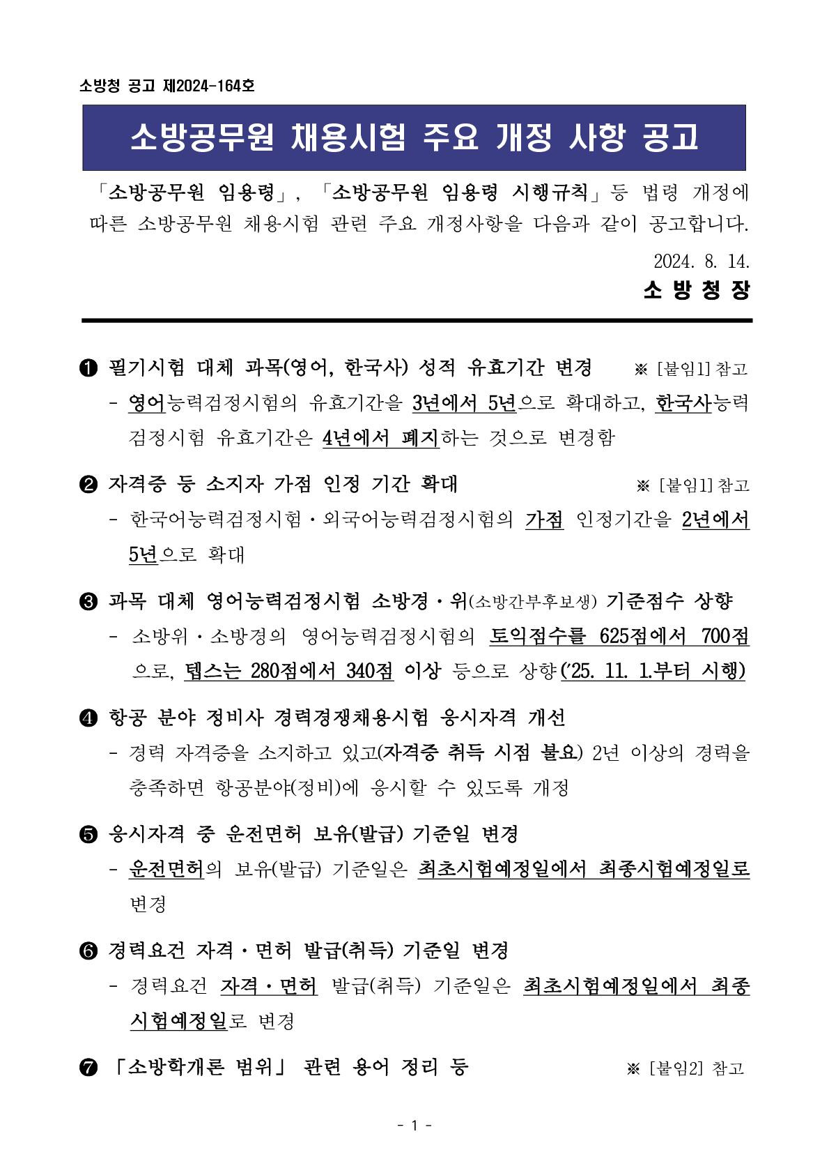 소방공무원 채용시험 주요 개정사항 공고 작성자스탭입니다|작성시간25.09.02|조회수2,532 목록 댓글 1 글자크기 작게가 글자크기 크게가 📢 정보에 도움이 되셨다면 '댓글'✍🏻과 '추천해요'👍를 부탁합니다. 다음검색 현재 게시글 추가 기능 열기 북마크 공유하기 신고 센터로 신고 댓글 댓글 1 댓글쓰기 답글쓰기 댓글 리스트 작성자하이고난 | 작성시간 25.09.03 감사합니다! 댓글 전체보기