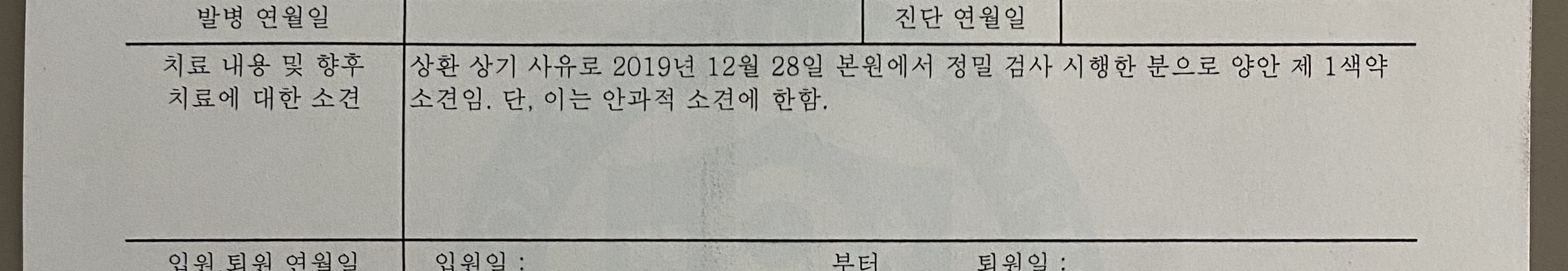 제가 작년 12월 말에 세브란스에서 색각경 검사를 받았는데 의사선생님 말로는 적녹 전부 약도라고는 하셨는데 소견서를 확인해보니 너무 애매모호해서 혹시 이 소견서도 신체검사시 제출 가능한가요?? 아니면 국립병원이나 경찰병원에서 다시 검사 받아야되나요..?