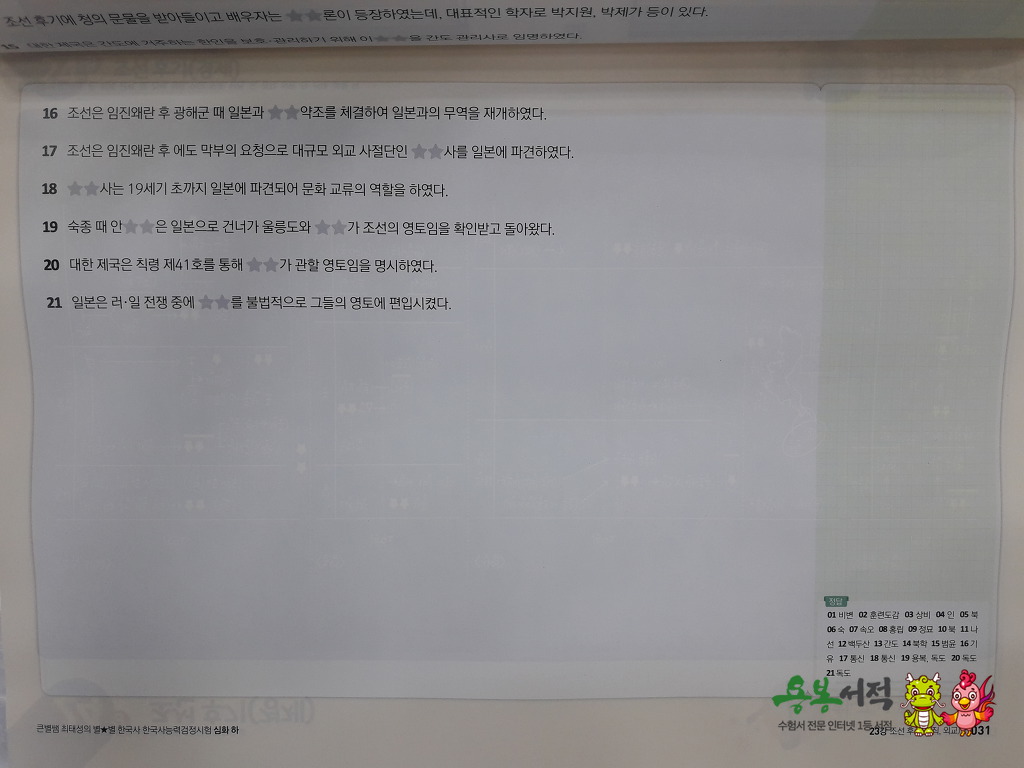 [미리보기]( 최태성 한국사 ) 큰별쌤 최태성의 별별한국사 한국사능력검정시험 심화(1.2.3급)(하), 최태성, 이투스북 작성자용이봉이|작성시간20.07.17|조회수382 목록 댓글 0 글자크기 작게가 글자크기 크게가 큰별쌤 최태성의 별별한국사 한국사능력검정시험 심화(1.2.3급)(하)정가14,500원판매가13,050원적립금131원 (옵션별 차등지급)저자최태성출판사이투스북발행일2020-01-31판형225x300/296pISBN9791164421114 다음검색 현재 게시글 추가 기능 열기 북마크 공유하기 신고 센터로 신고 댓글 댓글 0 댓글쓰기 답글쓰기 댓글 리스트
