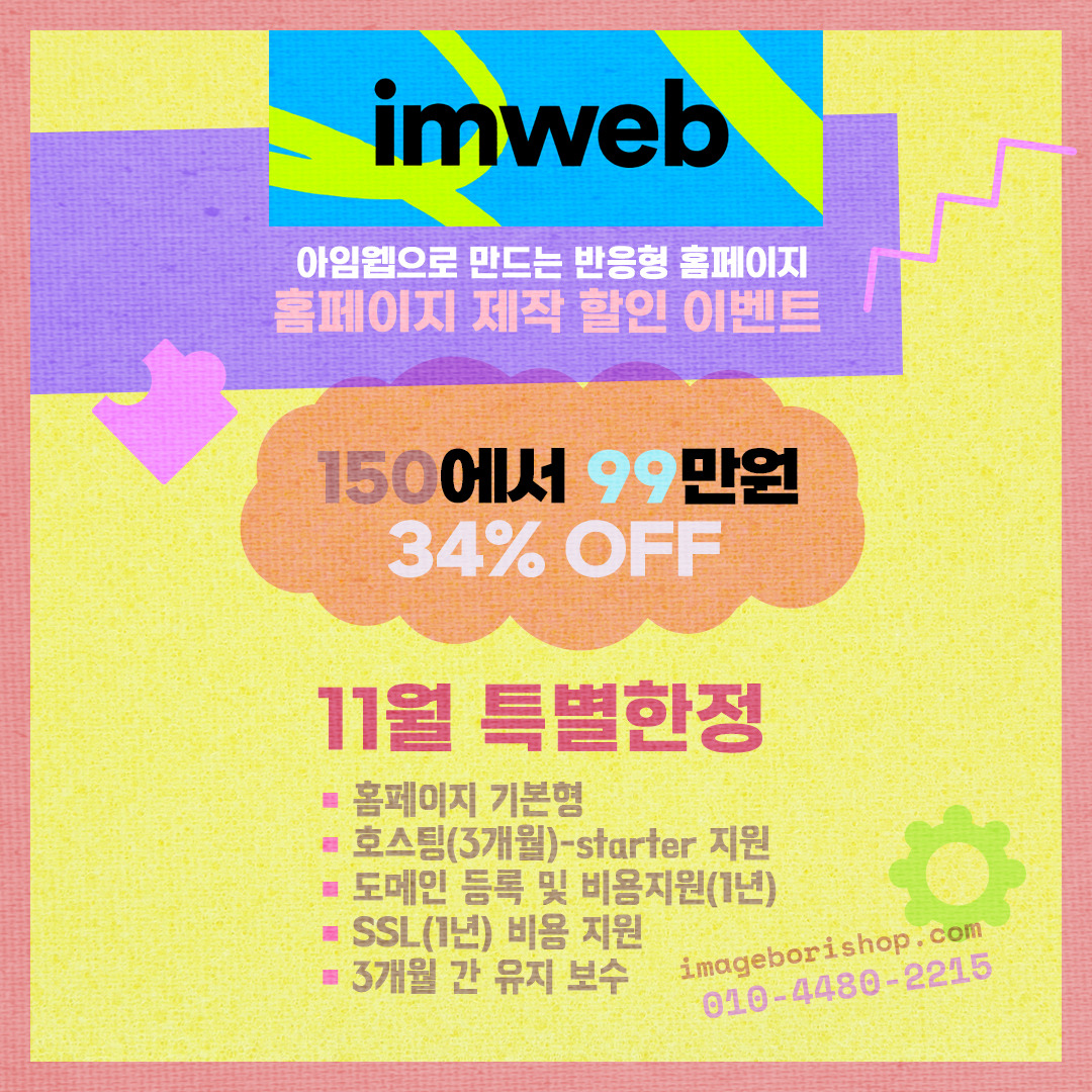 저도 아임웹을 사용하고 있고, 추천드리고 있습니다.