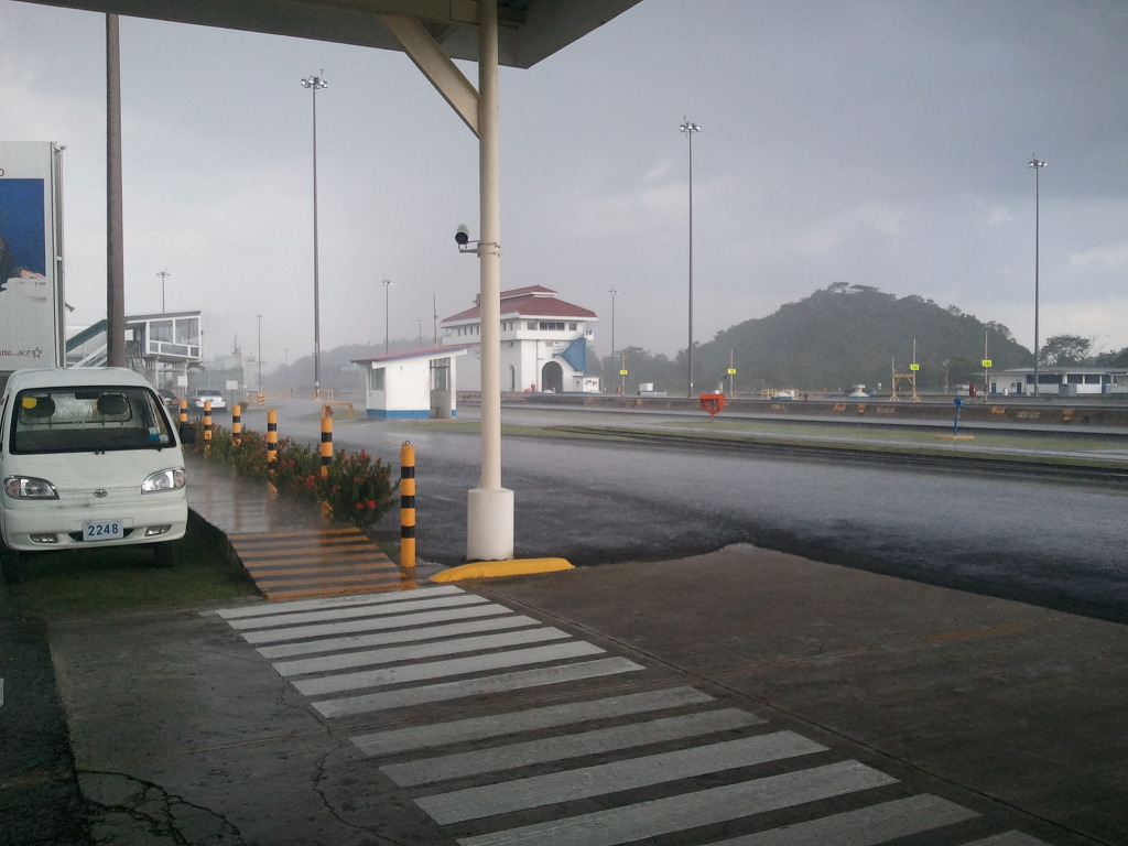 이번 사진은 오른쪽의 하얀 건물이 파나마 운하 제어실입니다. 그리고 현재의 상태는 스콜이 오는중이구요..