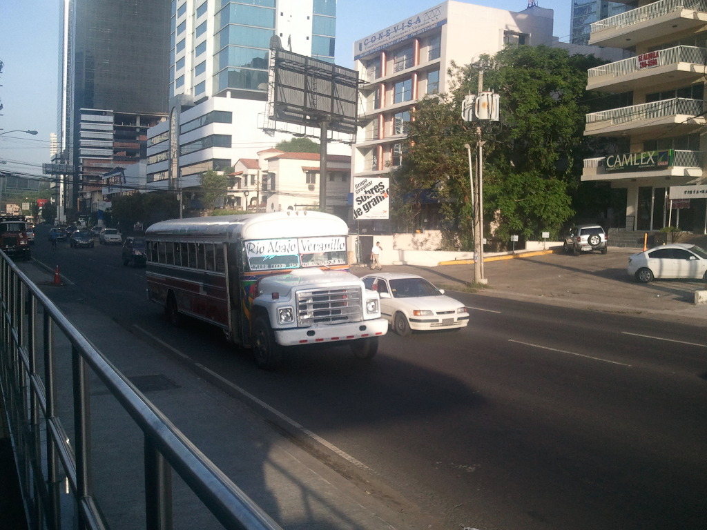 아래 사진은 파나마시티의 버스 사진입니다. 더운 여름인데도 에어컨이 없는 모양입니다. 창문을 활짝 열고 달리는 것을 보면..