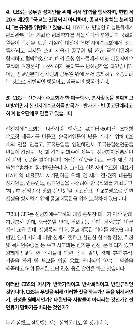 신천지 'CBS 만행 고발 성명서'발표! CBS 거짓보도 손해배상하라!