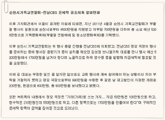 가장 깨끗해야 할 기독교 방송이 종교지도자들과 결탁해 국민의 혈세를 횡령한 죄!
