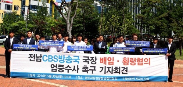 지난 5월 전남CBS 정모 국장의 배임·횡령혐의에 대한 엄중수사 촉구 기자회견이 있었습니다.
