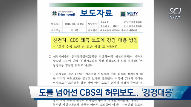[SCJ NEWS]신천지, 계속되는 CBS 왜곡보도로 인한 인권 피해 심각해
