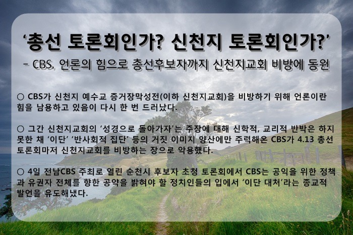 [CBS총선 토론회인가, 신천지 토론회인가1]