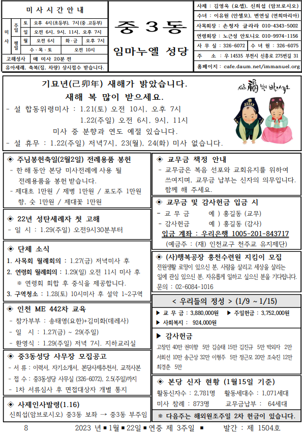 2023 년▪1월▪22일▪연중 제 3주일 작성자해피바이러스|작성시간23.02.25|조회수62 목록 댓글 0 글자크기 작게가 글자크기 크게가 다음검색 현재 게시글 추가 기능 열기 북마크 공유하기 신고 센터로 신고 댓글 댓글 0 댓글쓰기 답글쓰기 댓글 리스트