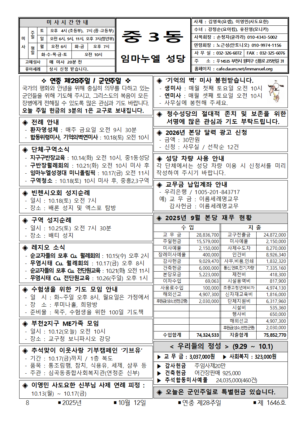 2025년▪10월12일 ▪연중제28주일/군인주일 작성자심선애효주아녜스|작성시간25.10.09|조회수155 목록 댓글 0 글자크기 작게가 글자크기 크게가 다음검색 현재 게시글 추가 기능 열기 북마크 공유하기 신고 센터로 신고 댓글 댓글 0 댓글쓰기 답글쓰기 댓글 리스트