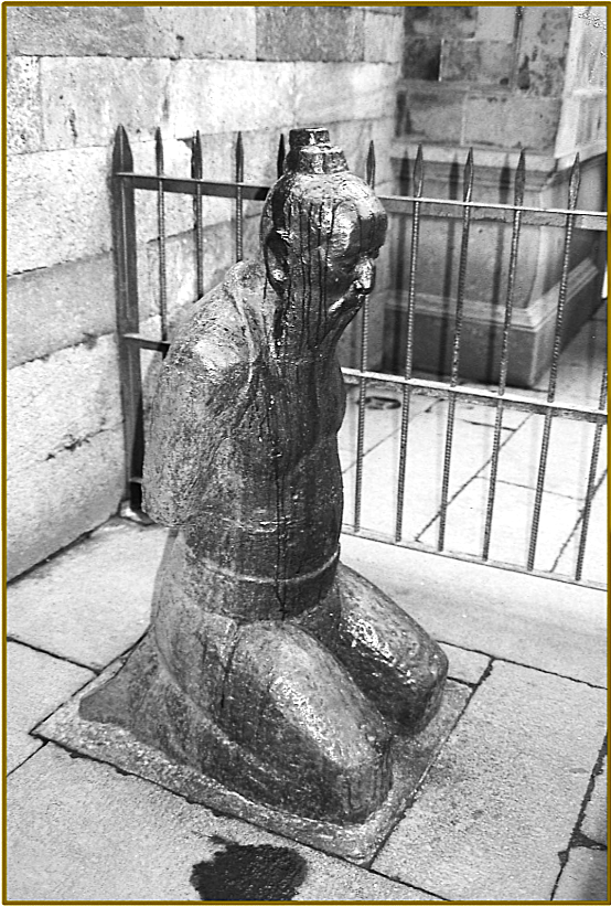 사진4. 악비와 악운의 무덤 앞에 무릎을 꿇은 채 영원히 역사에 사죄하고 있는 진회의 철상이다. 역사의 법정에는 공소시효가 없다.