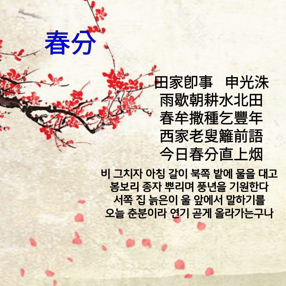 | 今日春分直上烟 | 금일춘분직상연 | 오늘 춘분인데 연기 곧게 올라가는구나. |