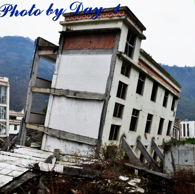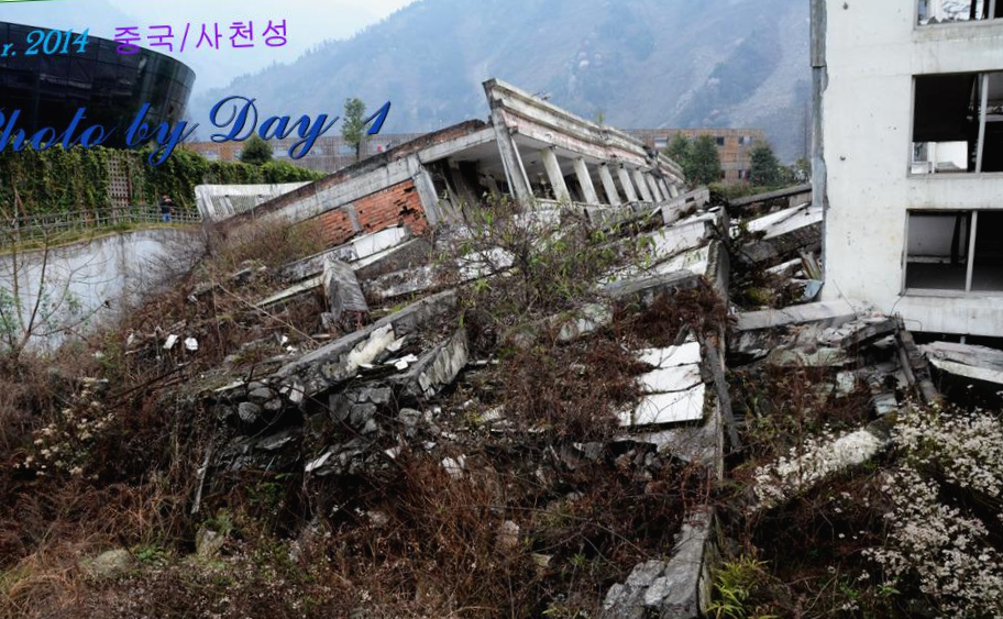 폭삭 무너져 내린 학교건물과 비스듬히 쓰러진 5층 기숙사 건물 등을 철거하지 않고 그대로 남겨