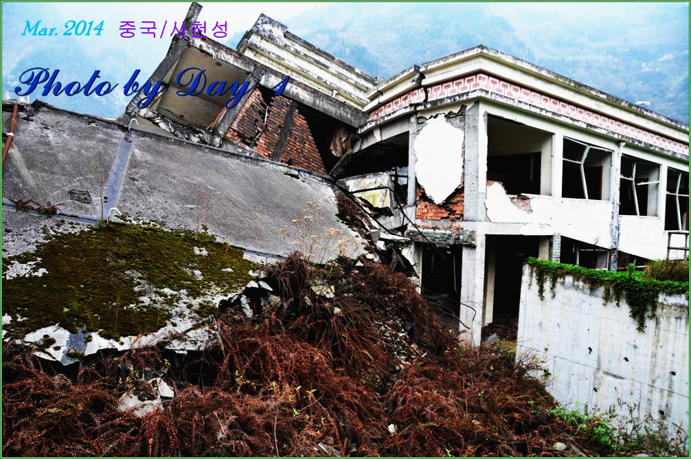 川特大地震 農房遺址’라 쓴 글씨가 선명히 남아 아직도 참혹한 흔적을 고스란히 간직하고 있다.
