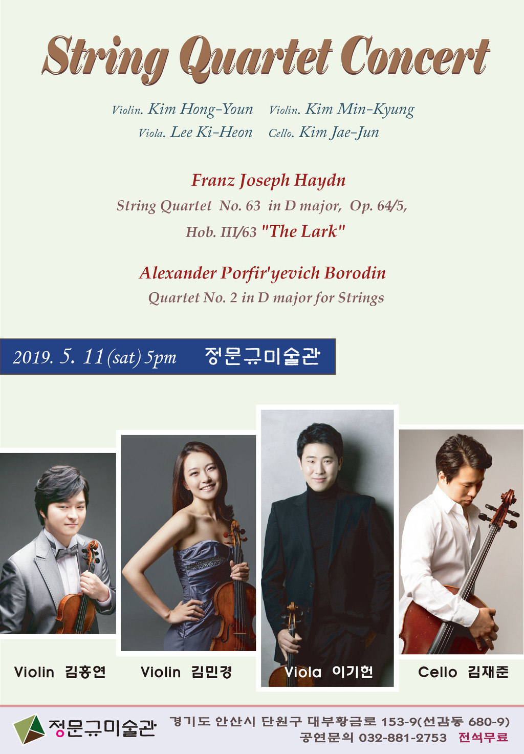 바이올린 김홍연 & 김민경 / 비올라 이기헌 / 첼로 김재준