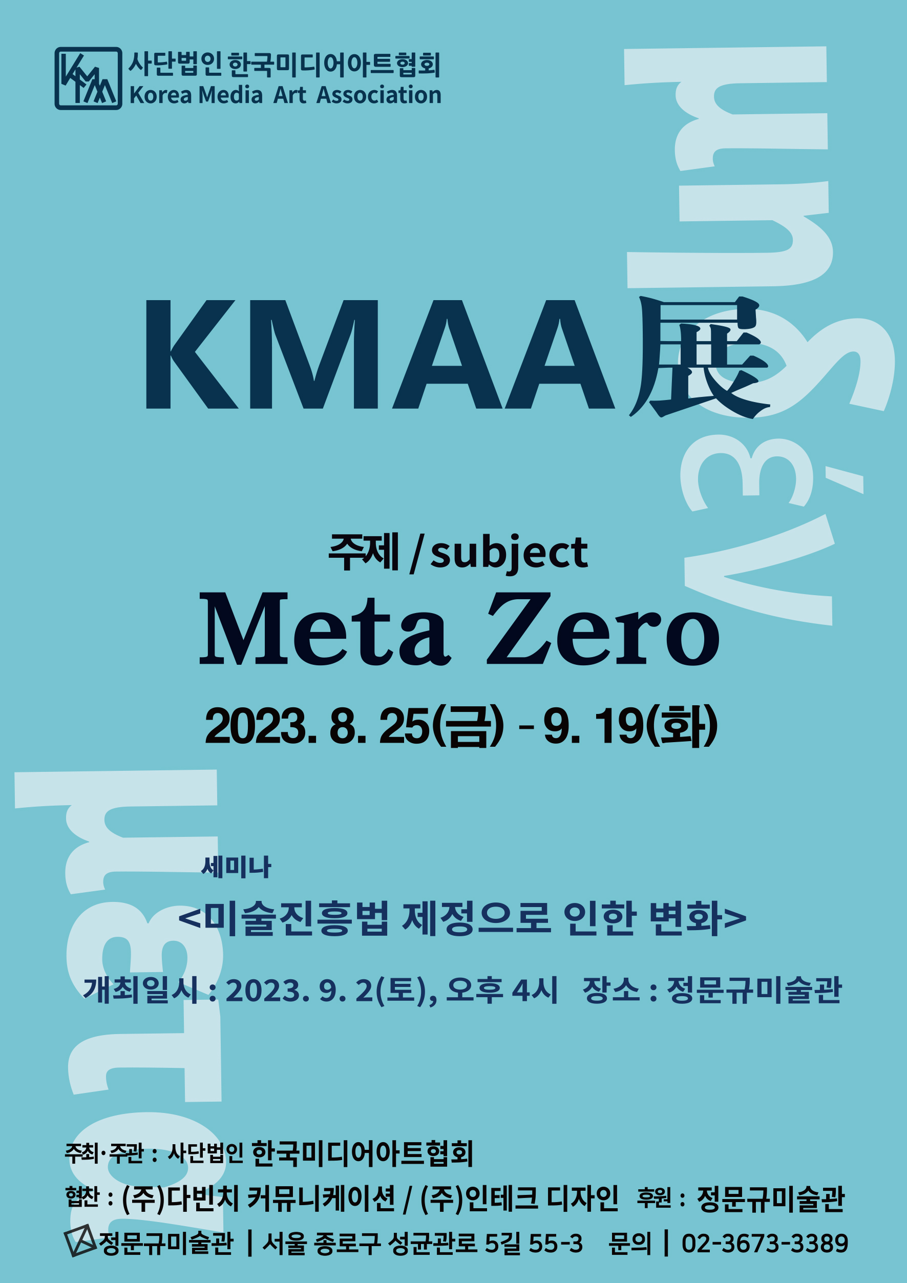 Meta라는 키워드는 과학의 그 넘어 공간 우주에 상관된 인간의 무한성을 의미하는 말로써 Meta와Zero는 서로 의미가 충돌하나 충돌에서 오는 예술적 중의성이 보여지는 합성어이고, 다르나 시작과 끝이 연결되어 무한적 공간이 형성되는 아트의 속성과도 통한다고 생각됩니다.