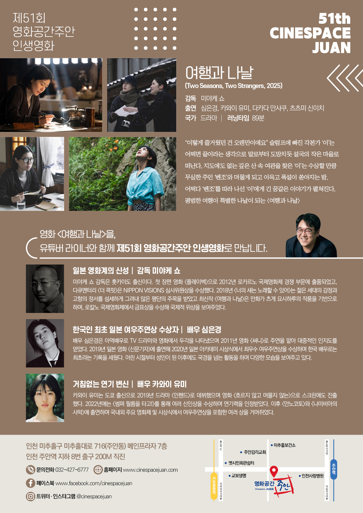제78회 로카르노영화제 황금표범상 수상 화제작<여행과 나날>을 개봉전 영화공간주안 인생영화로 만나보세요!