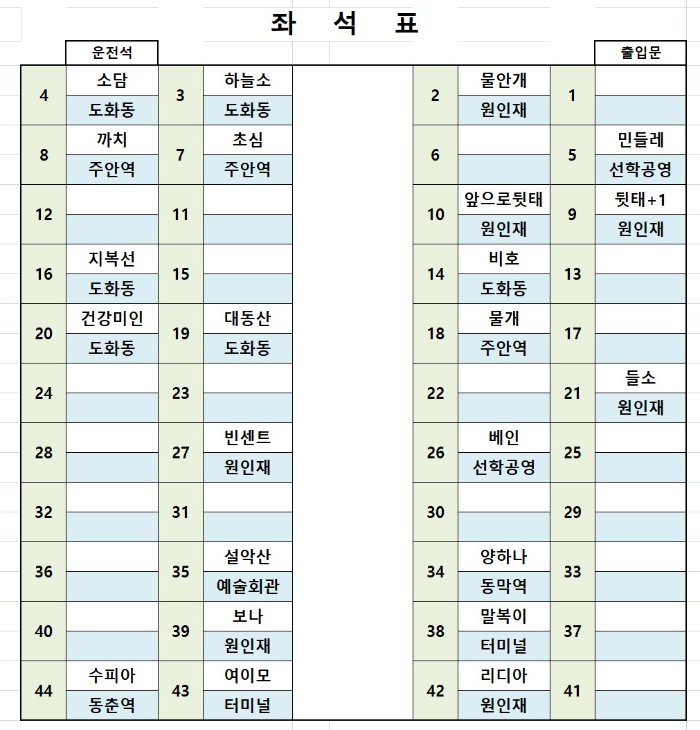 6). 버스좌석은 산행신청 우선순서에 따라 본인이 지정하시면 됩니다.