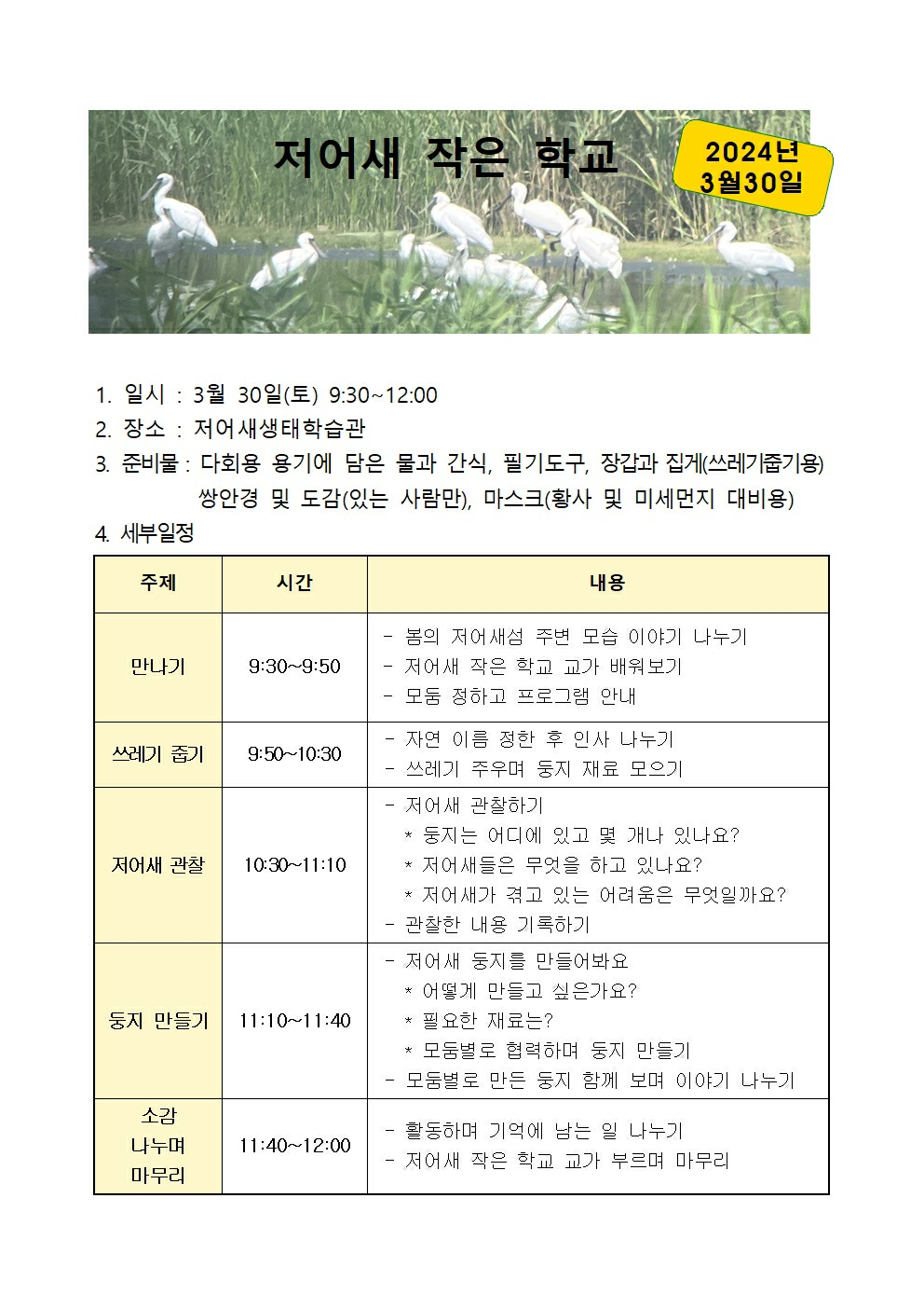 2024년 3월 저어새 작은 학교 안내 작성자오목눈이|작성시간24.04.01|조회수41 목록 댓글 0 글자크기 작게가 글자크기 크게가 다음검색 현재 게시글 추가 기능 열기 북마크 신고 센터로 신고 댓글 댓글 0 댓글쓰기 답글쓰기 댓글 리스트
