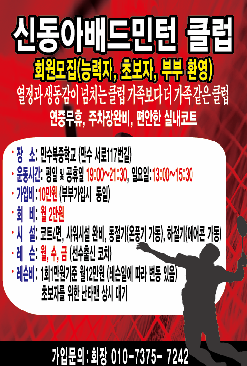 회원모집공고 작성자신동아클럽 나학영|작성시간17.04.06|조회수114 목록 댓글 0 글자크기 작게가 글자크기 크게가 안녕하세요. 다음검색 현재 게시글 추가 기능 열기 북마크 공유하기 신고 센터로 신고 댓글 댓글 0 댓글쓰기 답글쓰기 댓글 리스트