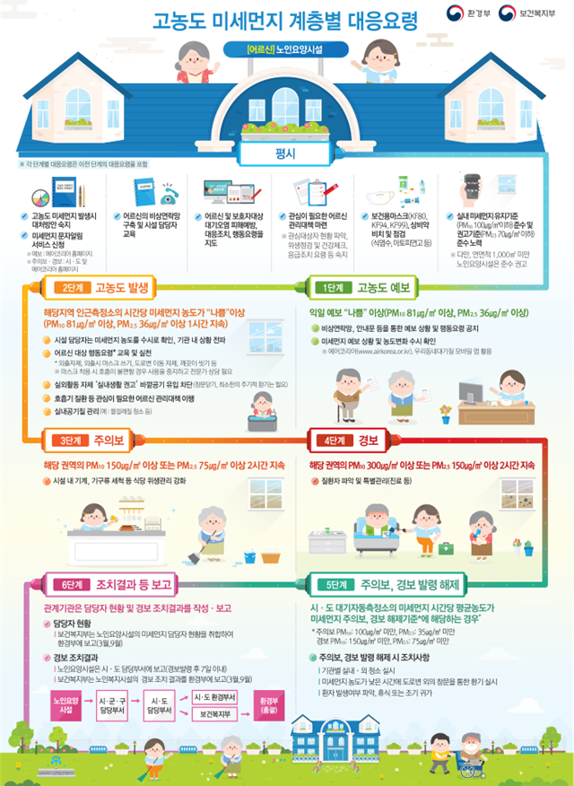 ※ 출처:(어르신)노인요양시설 고농도 미세먼지 계층별 대응요령…환경부, 보건복지부