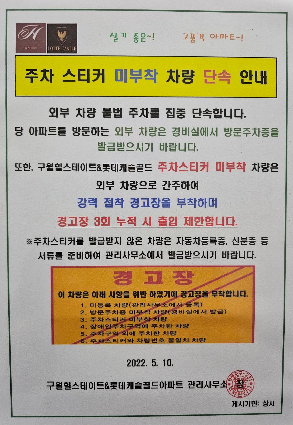 주차 위반스티커 부착하고 그에 해당하는 위반에 대한 재제를 하려면 규정이 명확해야 한다고 봅니다.