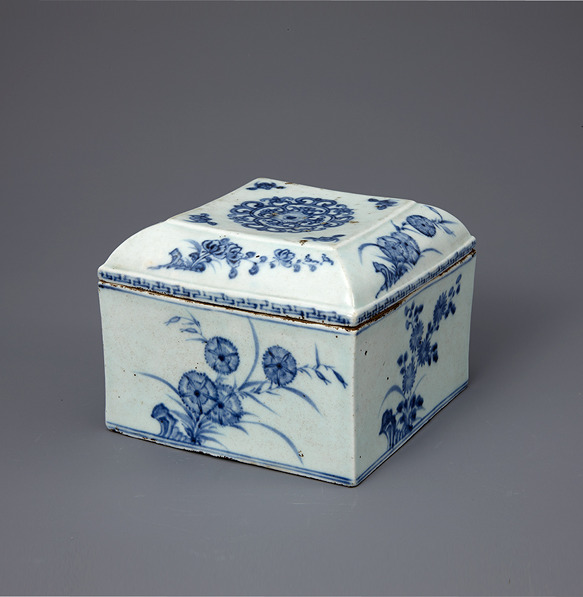 백자청화 풀꽃무늬 사각함 조선(朝鮮) 19세기 높이 10.2 cm 국립중앙박물관