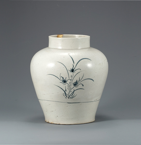 백자청화 난초무늬 항아리 조선(朝鮮) 18세기 높이 26.2 cm 국립중앙박물관